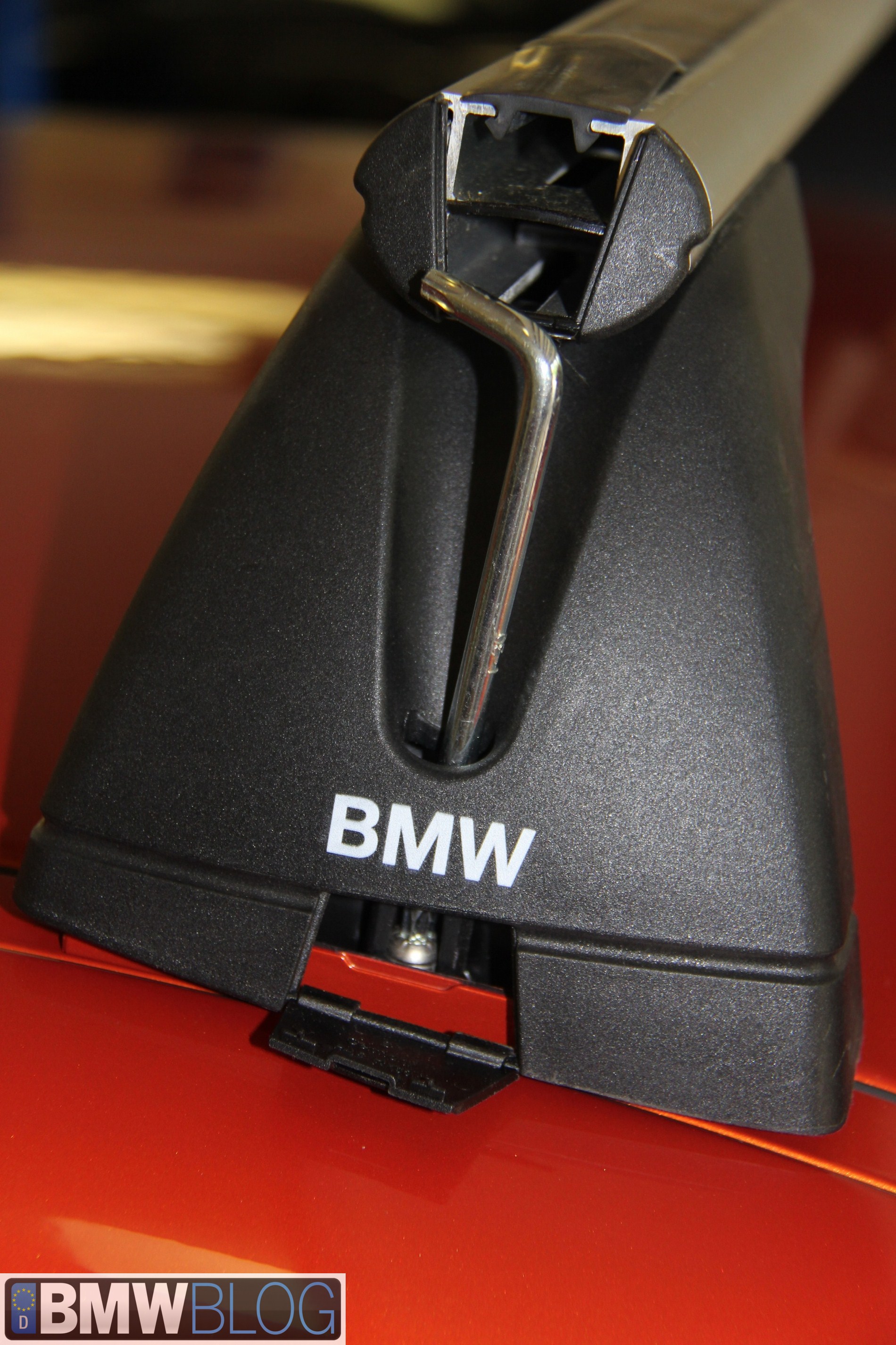 On newer BMW cars there are four little trap doors hiding the base mounting point on the roof. BMW gives you a little plastic key to pop these open. They’re very useful because it’s easy to chip the paint trying to pop it up. Once up, the base of the BMW rack seats down and then the base mounting screw is torqued down. I have used the old type pinch down or across base systems on other cars and they never felt as secure as this bolt it to the frame of the car. I have seen a similar system on Porsche. It’s an incredibly secure base.