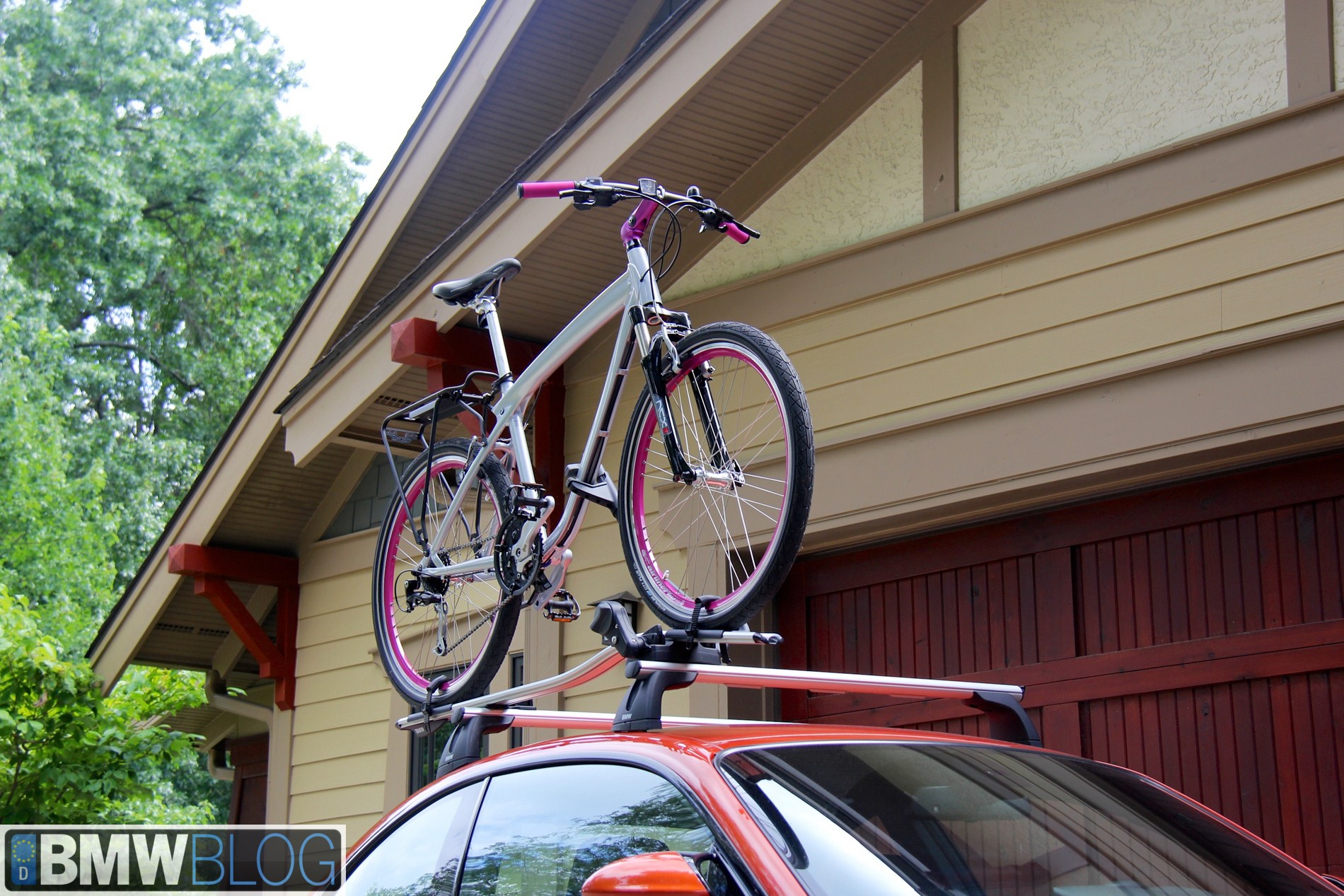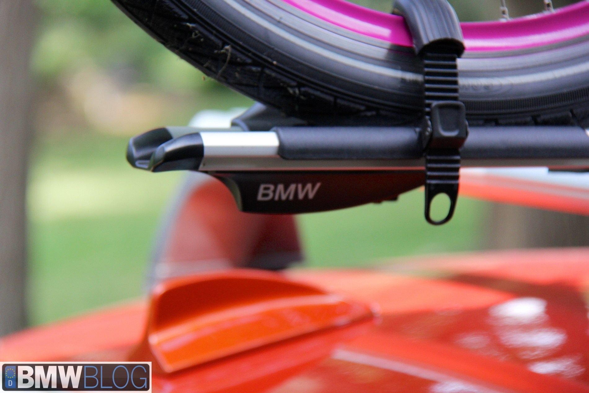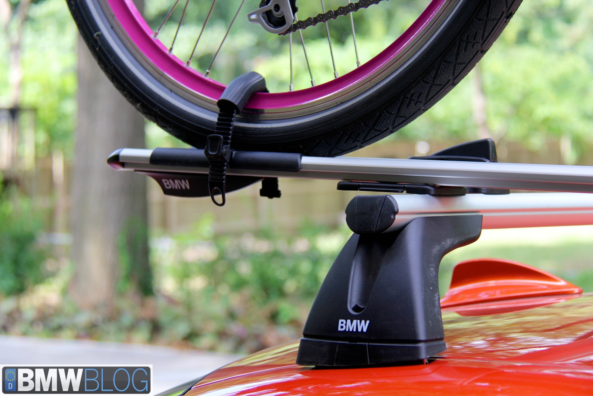 Own a BMW and want to tote a bike? BMW sells some very stout factory roof racks. These racks mount by screwing into the frame of the roof of your BMW. These look a lot like Thule racks but are adorned with BMW labels and fit incredibly securely.