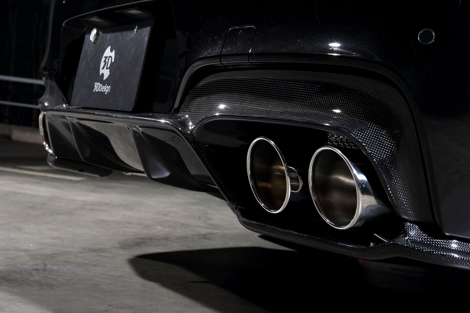 The trunk spoiler takes on a more aggressive approach by borrow some inspiration from the Moto GP F10 M5. One of the most impressive aspects of the entire kit is the rear diffuser. The rear diffuser is aggressive, but tasteful. As a substitute for the approach of adding massive fins, 3D Design opted for a 2 piece bolt on lower section that beautifully frames the exhaust tips. The kit is rounded out with a carbon fiber bolt on side-skirt.