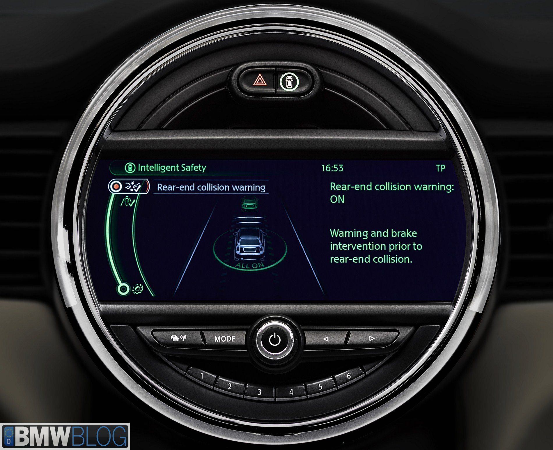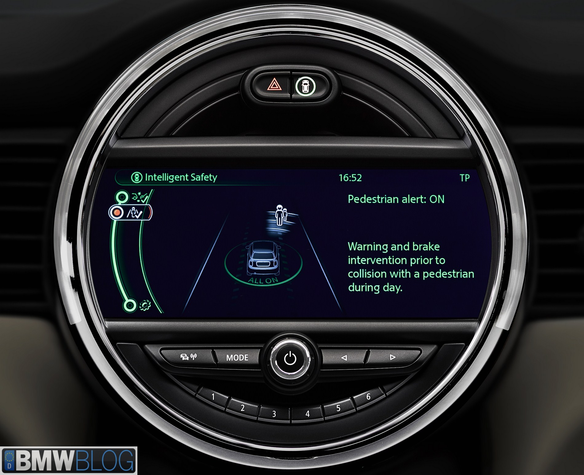 Other innovations in the driver assist systems for MINI include the video-based speed and distance control which automatically keep a safe distance from the vehicle in front, and the speed limit information system, which detects and displays speed limits as they apply to the current section of road. This system is supplemented by the no passing display and traffic sign memory functions. The digital headlight assist function contributes to optimum visual conditions when driving at night. This system helps the driver use the full range of headlight functions. Oncoming traffic and preceding vehicles are registered by a camera, while automatic switching to dimmed headlights avoids causing a nuisance for other drivers.