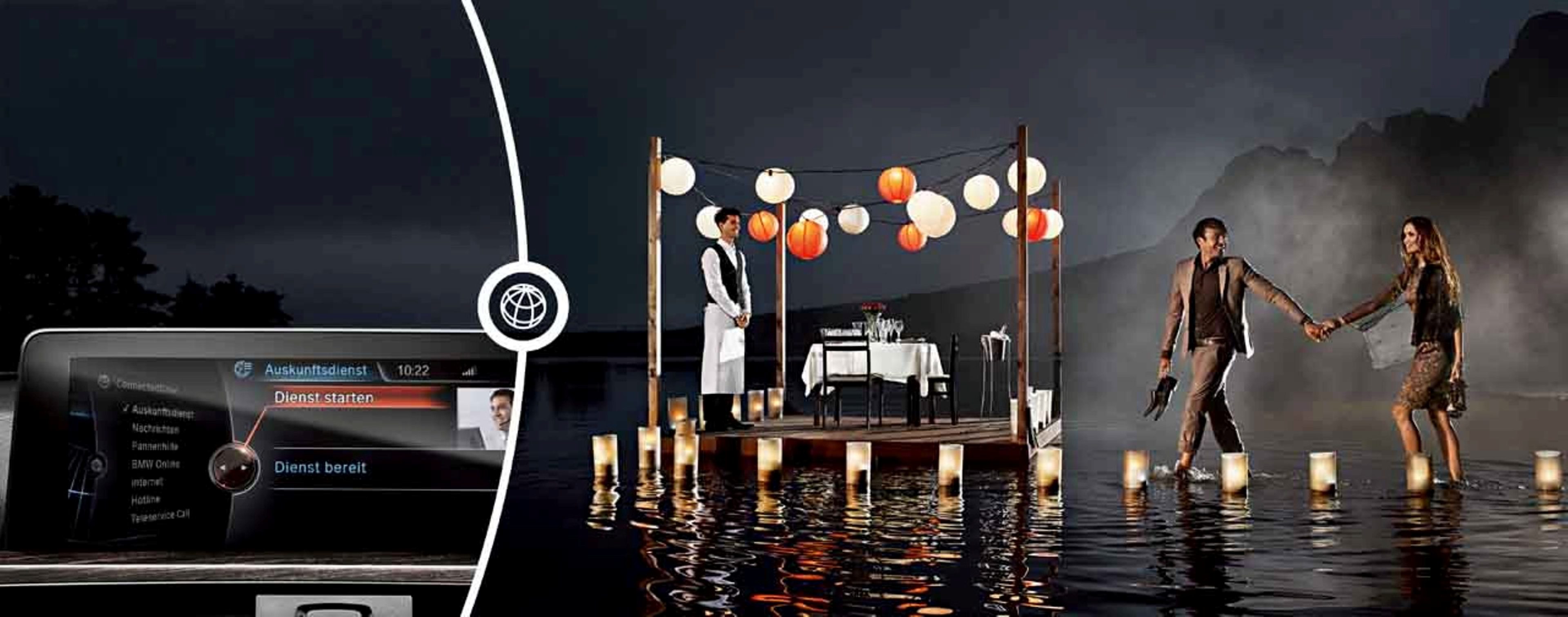 The print campaign comprises around 40 visuals, each depicting one of the functions of BMW ConnectedDrive – such as Real Time Traffic Information, Remote Services, Intelligent Emergency Call or BMW Head-Up Display. The ads and posters focus on the features’ added benefits for customers, with a visual language that is uncomplicated and emotionally powerful. All communication channels use their own specially-developed visual mechanics: Each motif is split to resemble the display in a car – the left half of the image shows the respective function, while the right features a motif with a corresponding story. A distinctive headline underscores the benefits of the function.