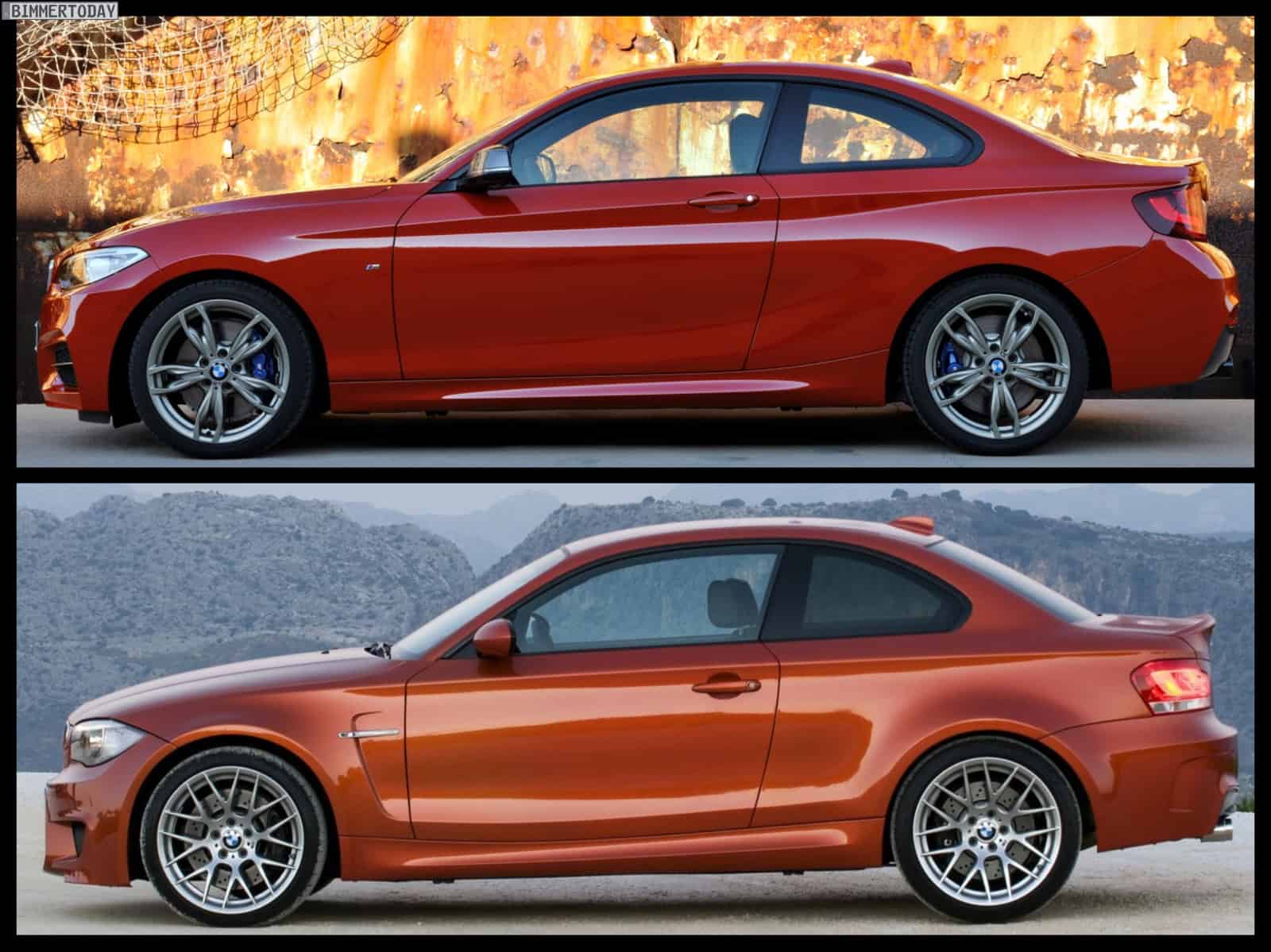 A photo comparison between the BMW 1M and the new BMW M235i.