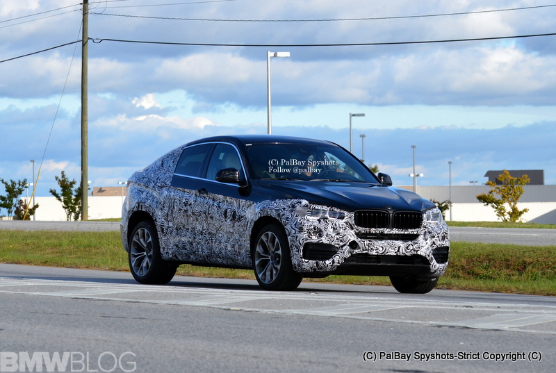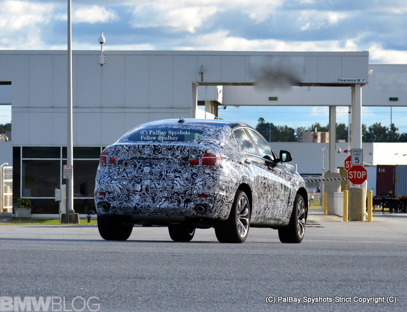 Spy photographer Palbay spotted the F16 BMW X6 xDrive35i in Sparkling Brown during a testing session at the BMW plant in Spartanburg. The new X6 will once again be sharing a platform with the BMW X5. Some of the design features are imported from the X5 and the upcoming X4, including the new headlights which connect to the kidney grille, larger kidney grilles and a “shark nose.” Just tike the X5 and other new BMW models, the 2016 X6 comes with air breathers on the sides.