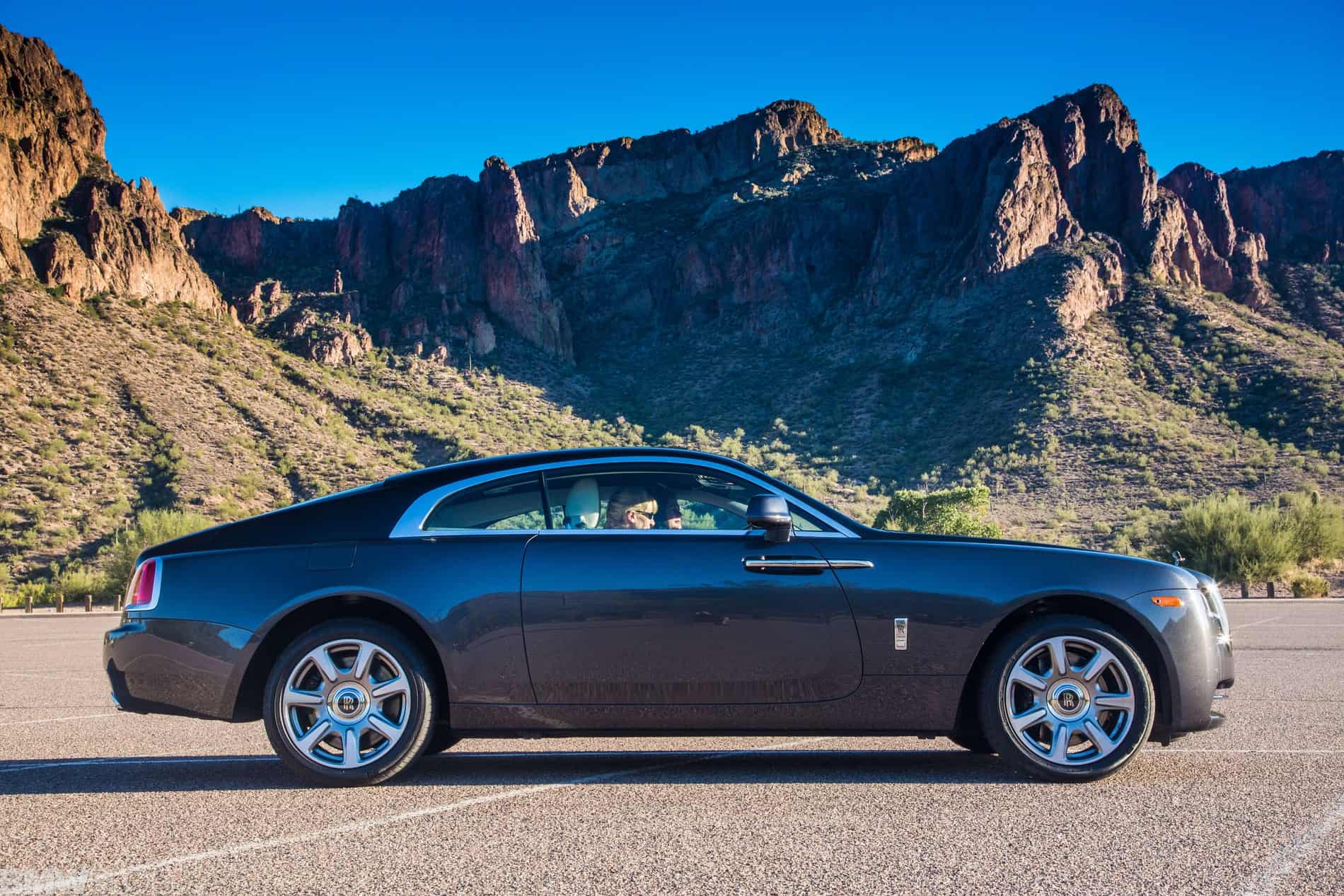 The noun “wraith” has Scottish origins and means ghost or spectre. Rolls-Royce uses spectral names for their cars, as much to suggest that while their presence is in the corporeal world they are, nevertheless, not of the world. Rather they are above the world – on another plane. And in an amongst the Ghosts, Phantoms, and Seraphs, now comes the Wraith. The Wraith is visually distinctive – a slightly more sinister Ghost. The Wraith features a shorter wheelbase, modified grille, more power, and a bit more aural feedback when the accelerator is pressed than the Ghost, on which it is based. The Wraith is a two plus two, fully luxurious, and remarkably capable, Grand Touring car. And I was about to find that out heading south on Arizona 188.