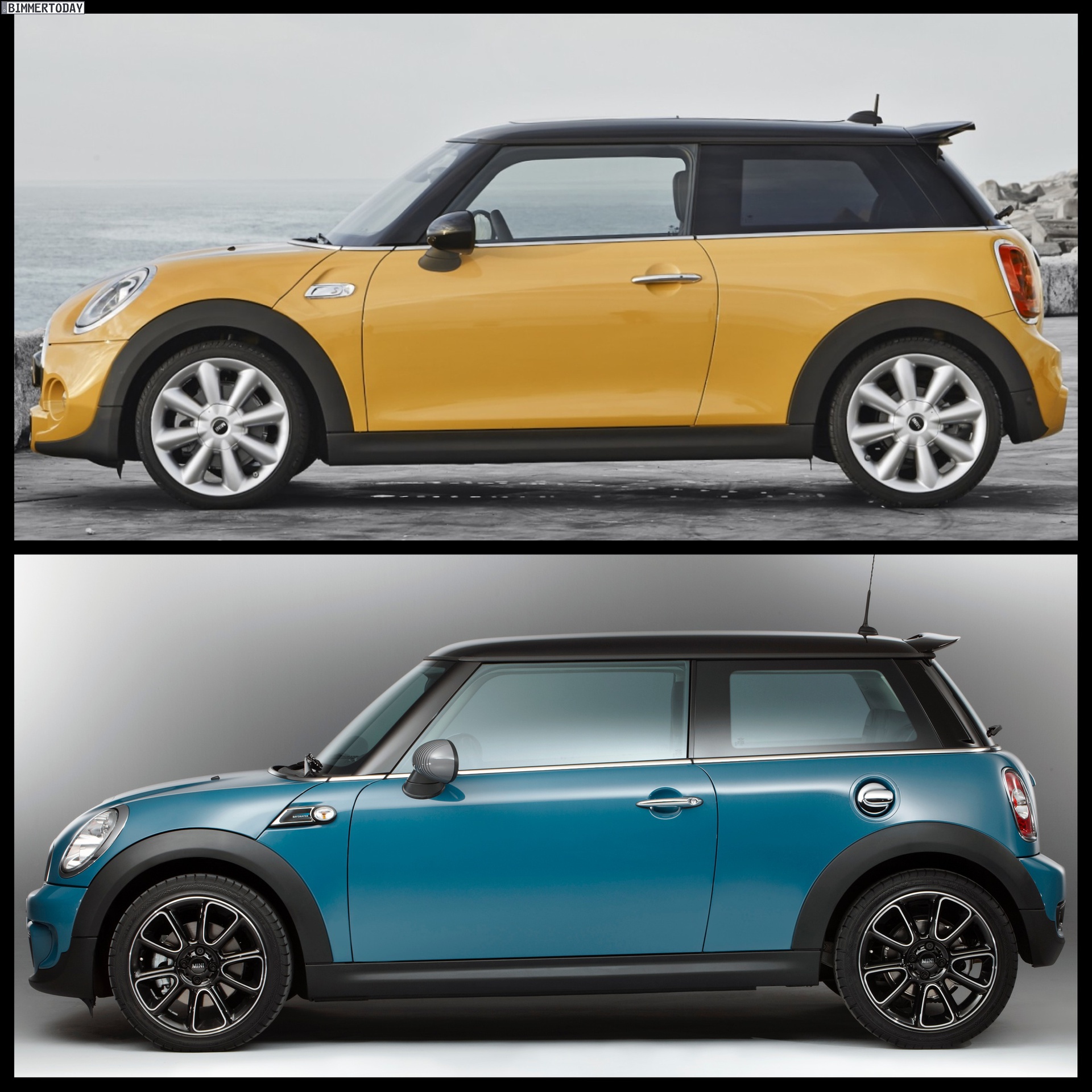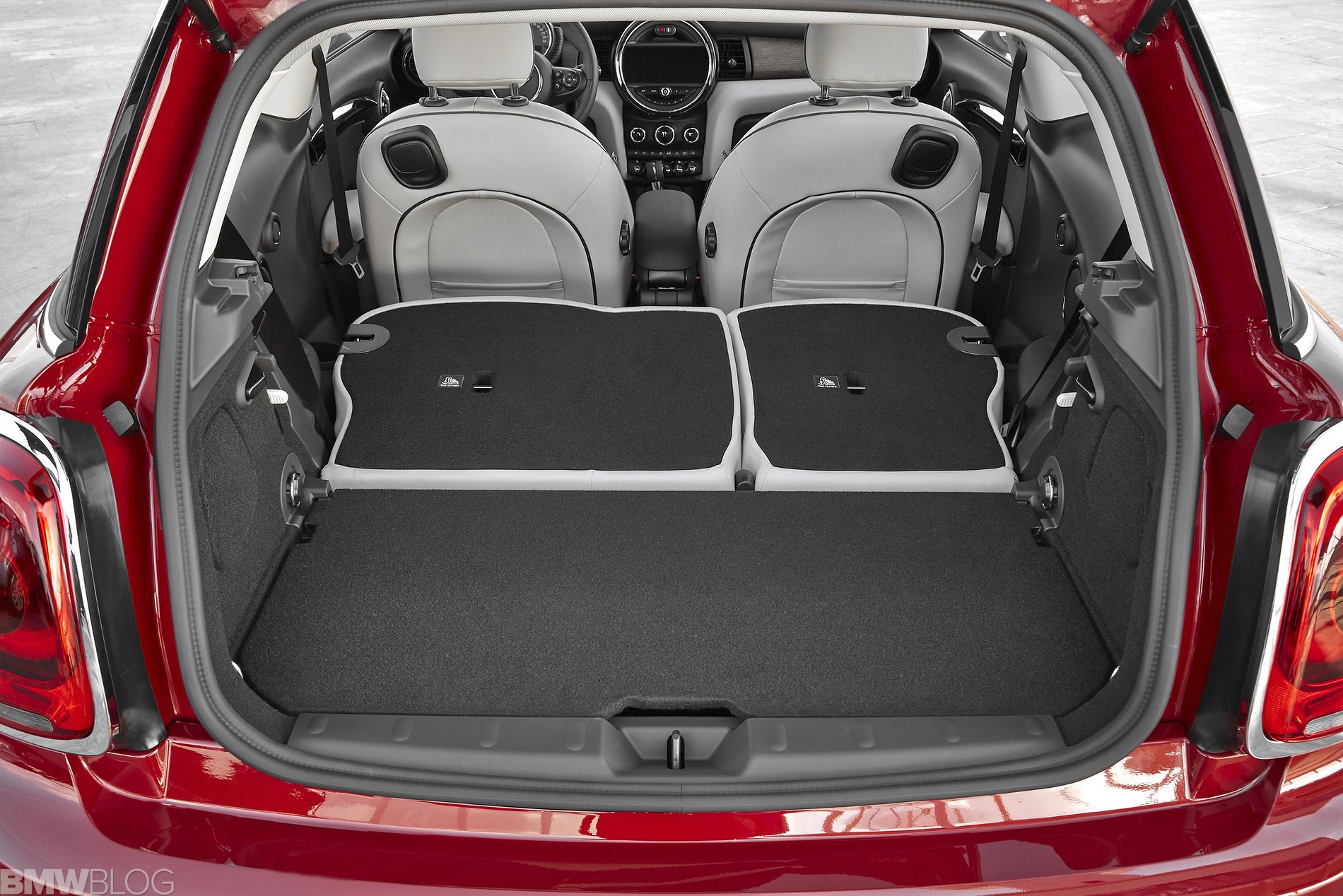 As usual, we put together a photo comparison of the F56 MINI against the outgoing R56 model and the first thing that stands out is the size increase of the newcomer. The F56 length was increased by 98 millimeters, width by 44 millimeters, height by 7 millimeters, also has a longer wheelbase (+ 28 millimeters) and larger track width (front + 42 millimeters, rear + 34 millimeters) as compared to the predecessor model (differential figures relate to MINI Cooper). The luggage compartment volume was increased by 51 liters to 211 liters.