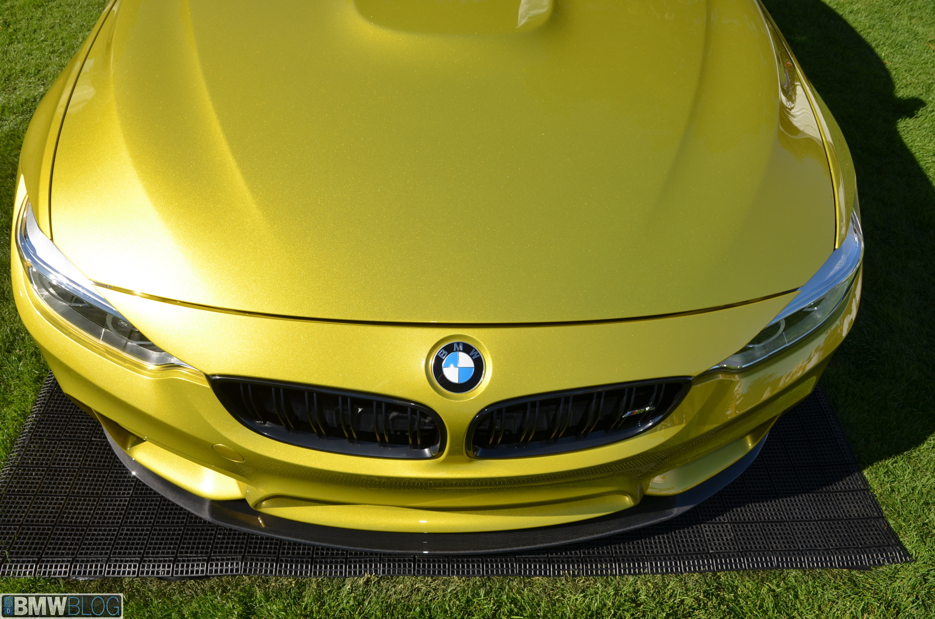 A further striking feature on the front of the new BMW Concept M4 Coupe is the BMW M double bar kidney grille: The black kidney grille bars imitate the characteristic M double spoke design of the BMW M wheels, the M4 emblem on the kidney grille adding an exclusive accent to the front end.
