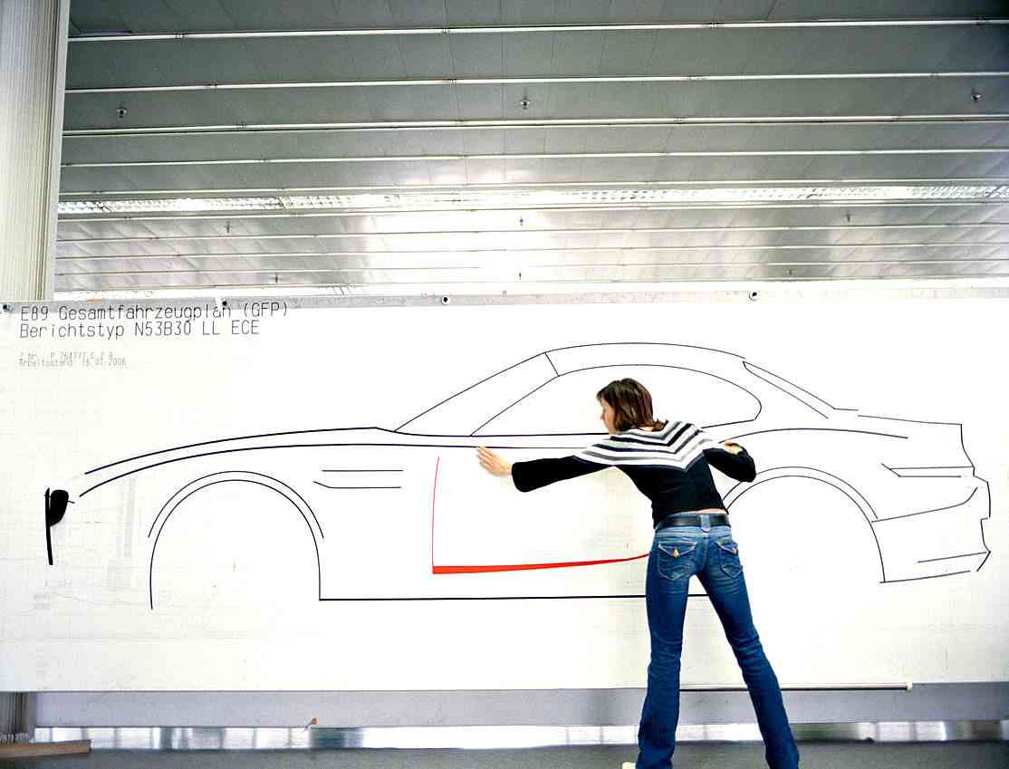 The model used to apply clay to is built up around a metal frame (with wheels in their final position – though without any suspension) and the carved foam blocks. Clay is applied to the surface of the model and is worked by hand until the surfaces are perfect. BMW likes to play with light and shadow but does not like busy surfaces. Therefore, the smallest change in a surface – visible only when sculpted – can make the difference between a winner and a loser in the competition.