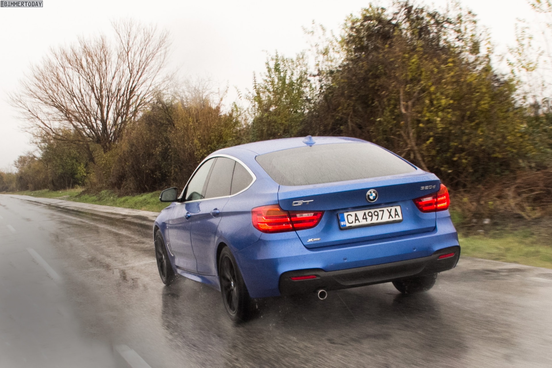 Pictured in this article is a BMW 320d xDrive GT with M Sport Package and black wheels, which attracts attention due to its paint in rainy weather.