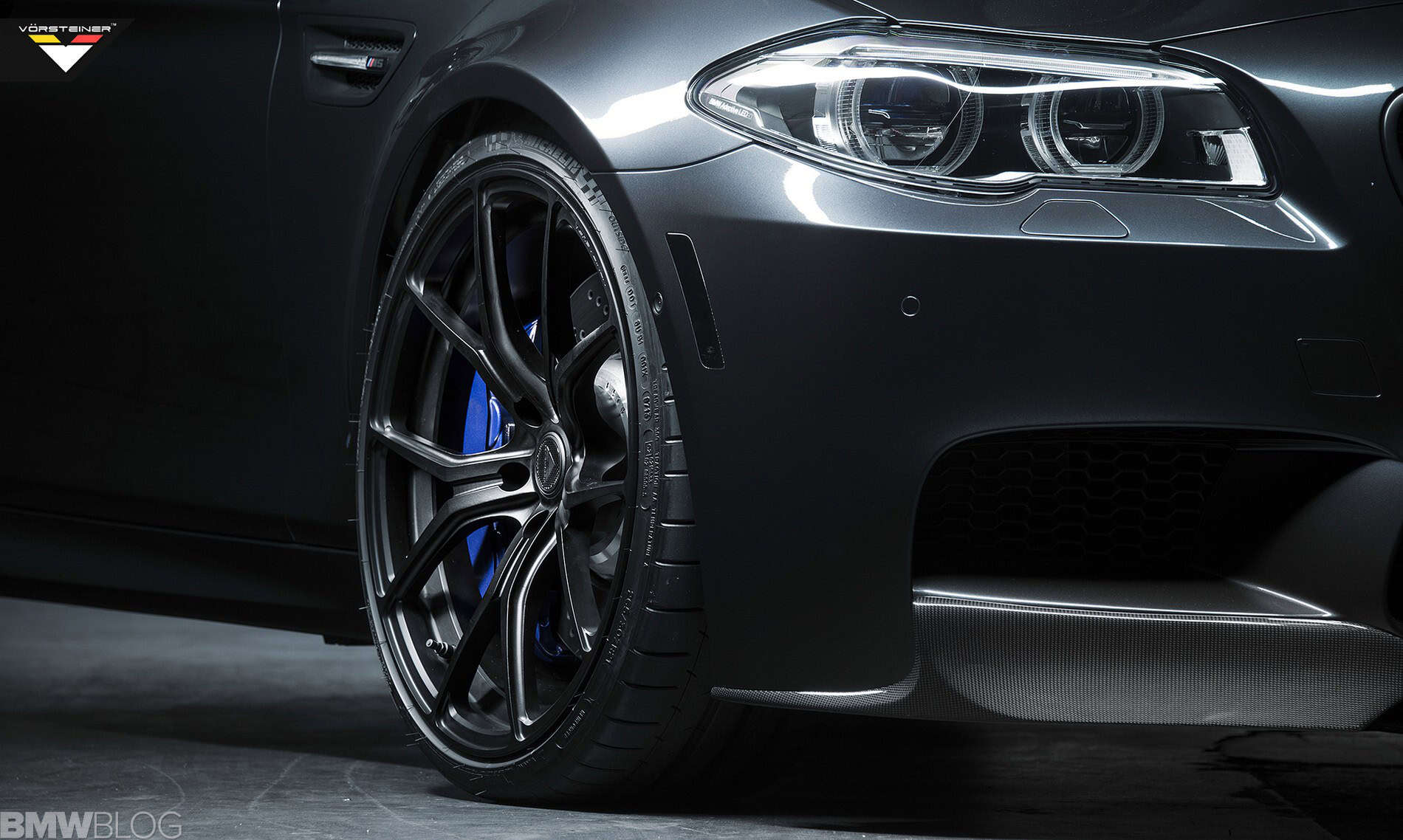 To go with the overall exterior scheme, a new set of wheels were specifically designed for the M5. Their forged mono block VSE-003 wheels come in Texture Black, Gloss Gunmetal/Silver/Black, Gloss Brushed Aluminum, Matte Brushed Shadow Aluminum. Other custom finishes are available also.