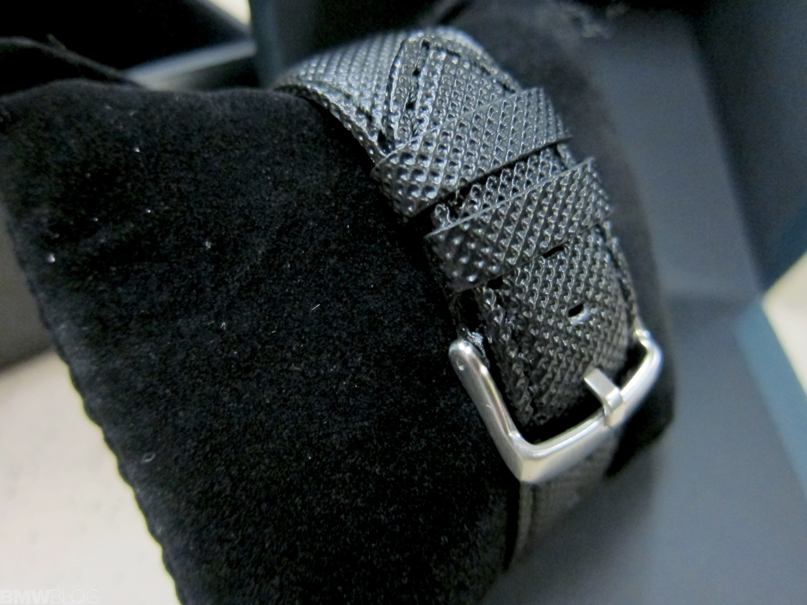 The glass bezel is a hardened mineral glass which looks and feels very durable. Though I didn’t have the heart to see how scratch resistant it is. The strap is intriguing because it is both leather and nylon. The nylon is on the outer surface and the leather is on the inside of the strap. The buckle is brushed stainless steel with the words “STAINLESS STEEL CHINA” stamped on the back.
