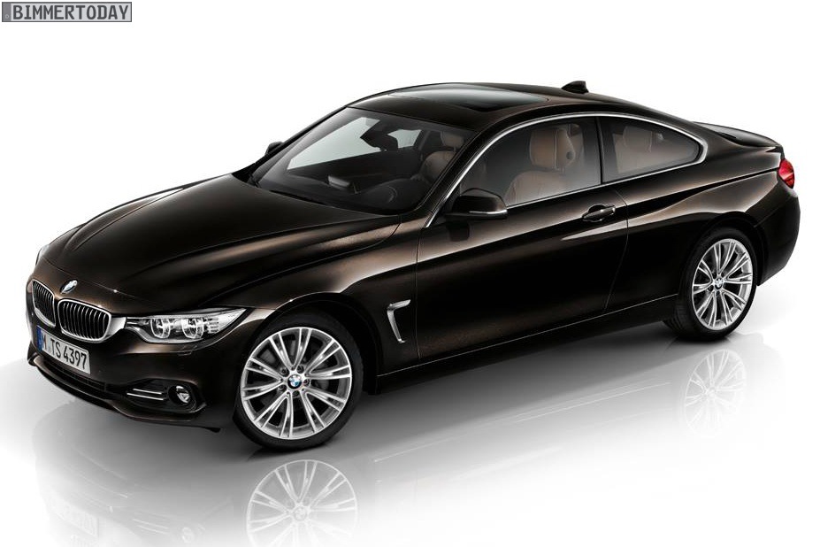 The 4 Series Coupe shown wears the Citrine Black Metallic colors and also the 19 inch wheels 626 I. Inside the coupe we have the Merino leather upholstery in a gold-brown combination with the fine wood elements ,strongly reminiscent of the interior of the BMW Concept 4.