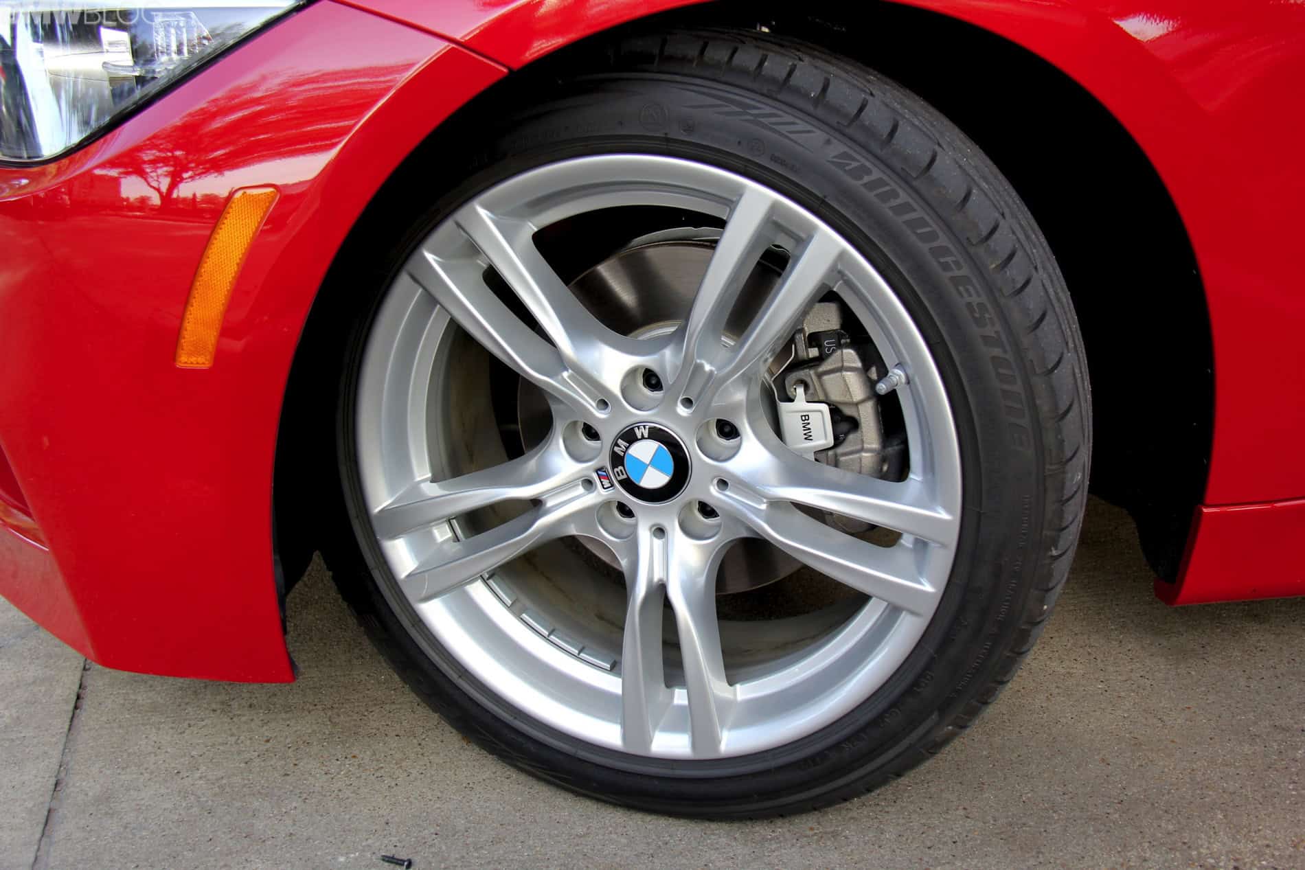 The $3,500 M Sports Package is money well spent in my book. The sportier appearance is only part of the deal — the suspension is much tighter, and the M Sport Steering Wheel with shifting paddles gives you great control without moving your hands off the wheel. Adding the Dynamic Handling Package for $1,000 sharpened the steering and added adjustable dampers. Now you have a much better steering setup than what comes in the base F30 3 Series. With adjustable side bolsters, the M Sport seats really hold you in place — something we came to enjoy from a BMW. The M Sport Package came with Style 400 18-inch wheels and summer performance tires. These were very grippy until one hits some snow and ice — then not so much. Time to pull off the highway and wait for the winter storm to pass.