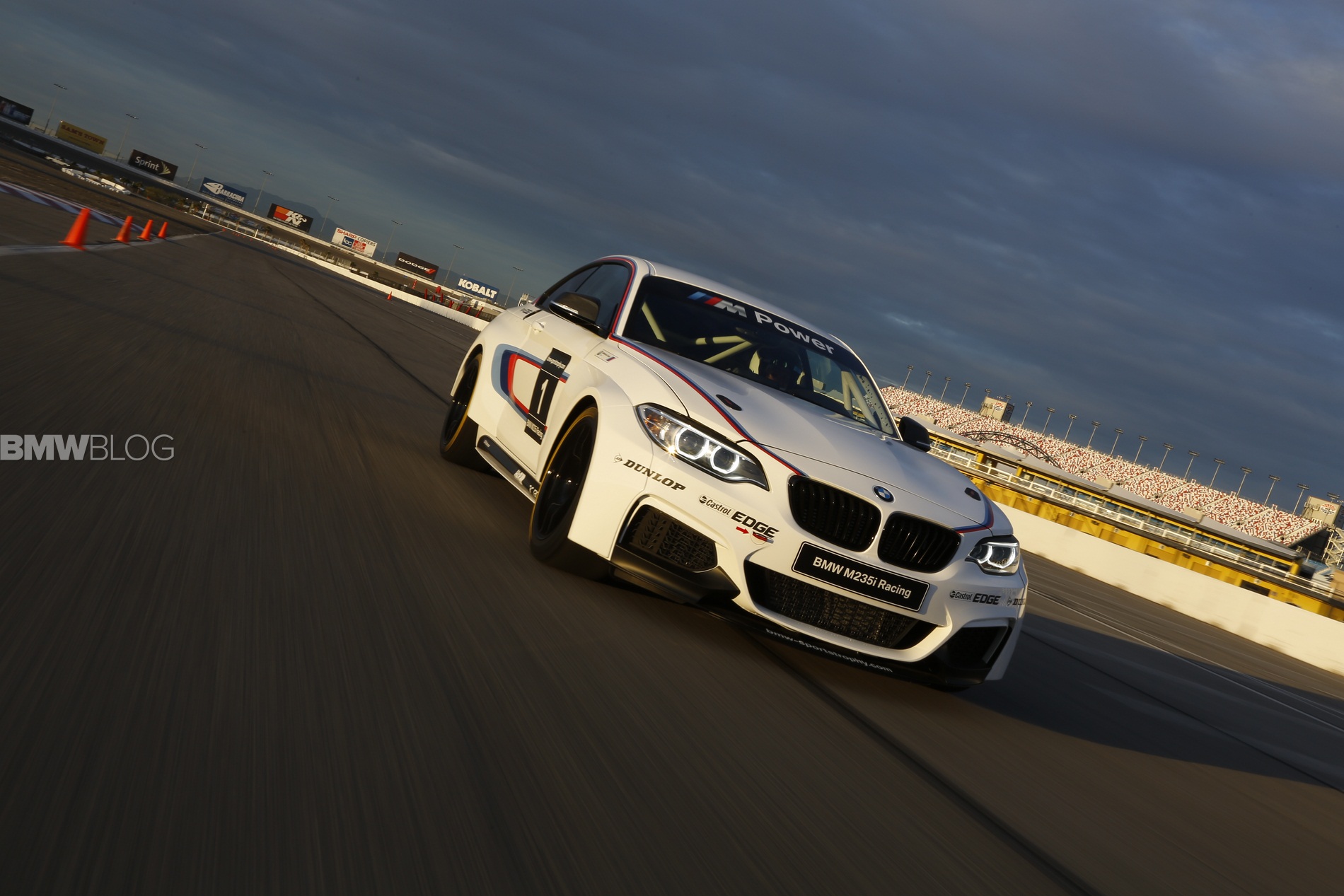 Here is the BMW M235i Race Car on the race track at the Las Vegas Motor Speedway.