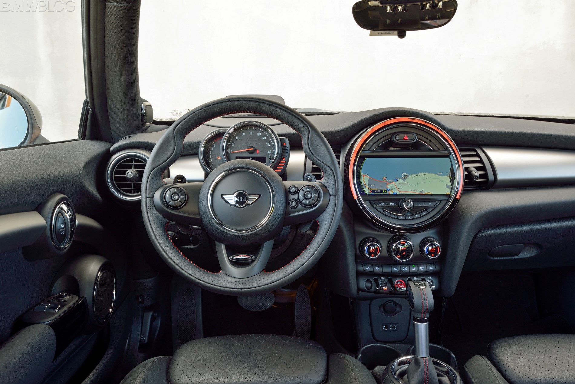 MINI really upped their game by adding a whole slew of new features not usually seen in cars in this market segment. For the first time Head-Up display, Parking Assistance and LED lights are now offered in MINI. To remain true to its roots, the new MINI has to be fun and hipster so there is a new central LED ring surrounding the navigation screen that changes colors depending on the MINI’s mood. When I drove it angry, it would turn red, if I switched it to green mode and wasn’t hammering the car, it would be green or blue. The lightning also can change depending on music.