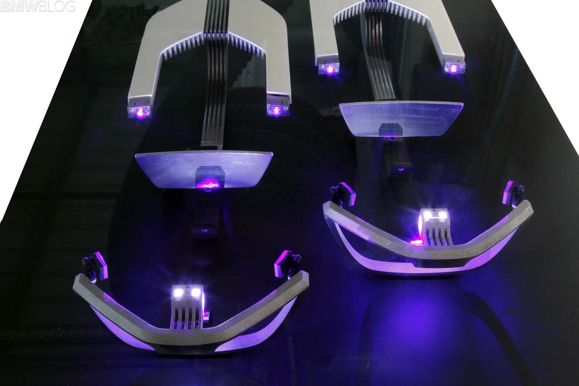 The BMW i8 is the world’s first series-produced vehicle to be available as an option with innovative laser headlights, which generate a pure-white, extremely bright light that is pleasant to the eye. The light is created through the conversion of the beams emitted by tiny laser diodes by means of a fluorescent phosphor material inside the headlight.