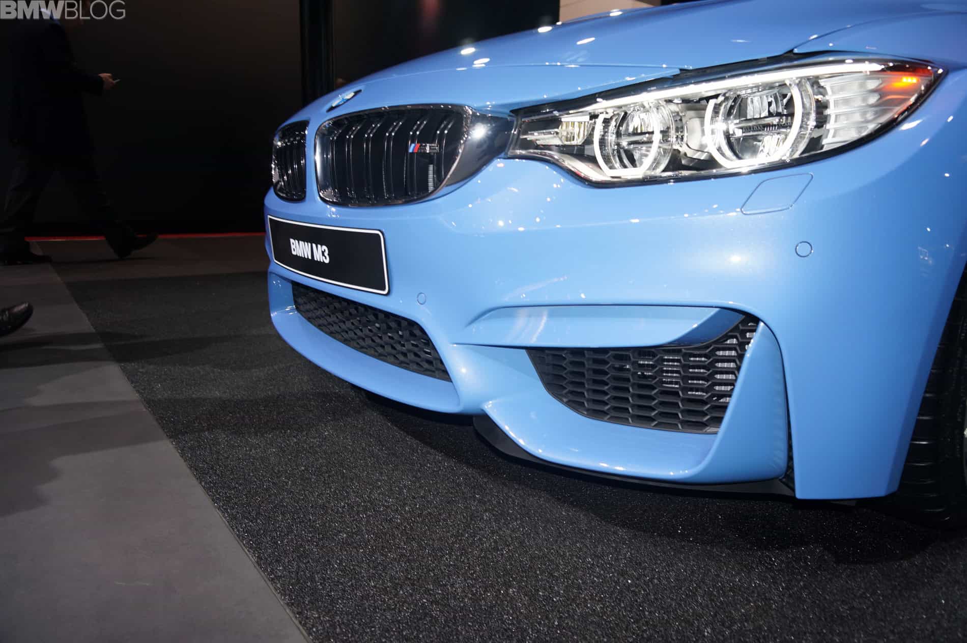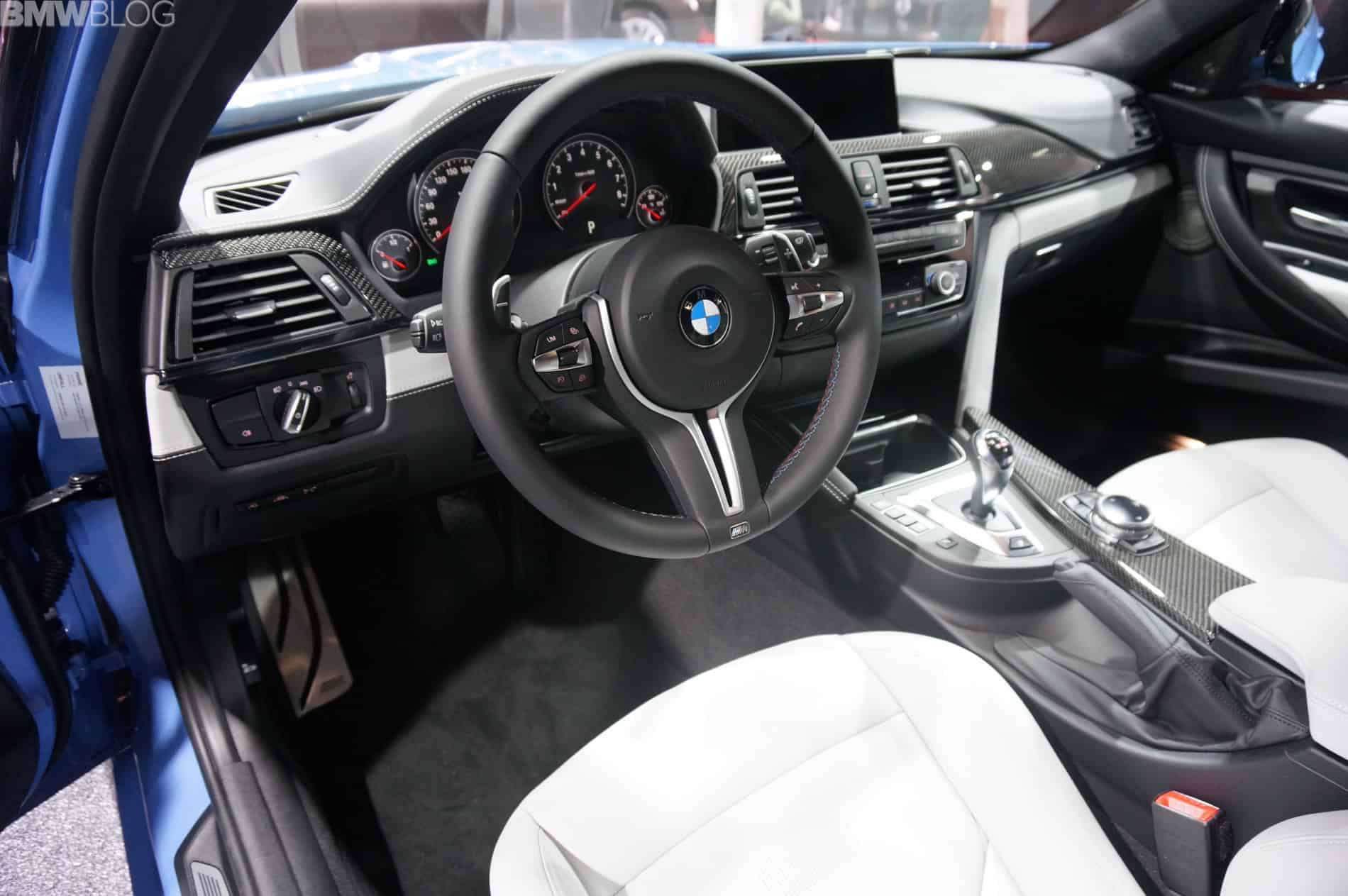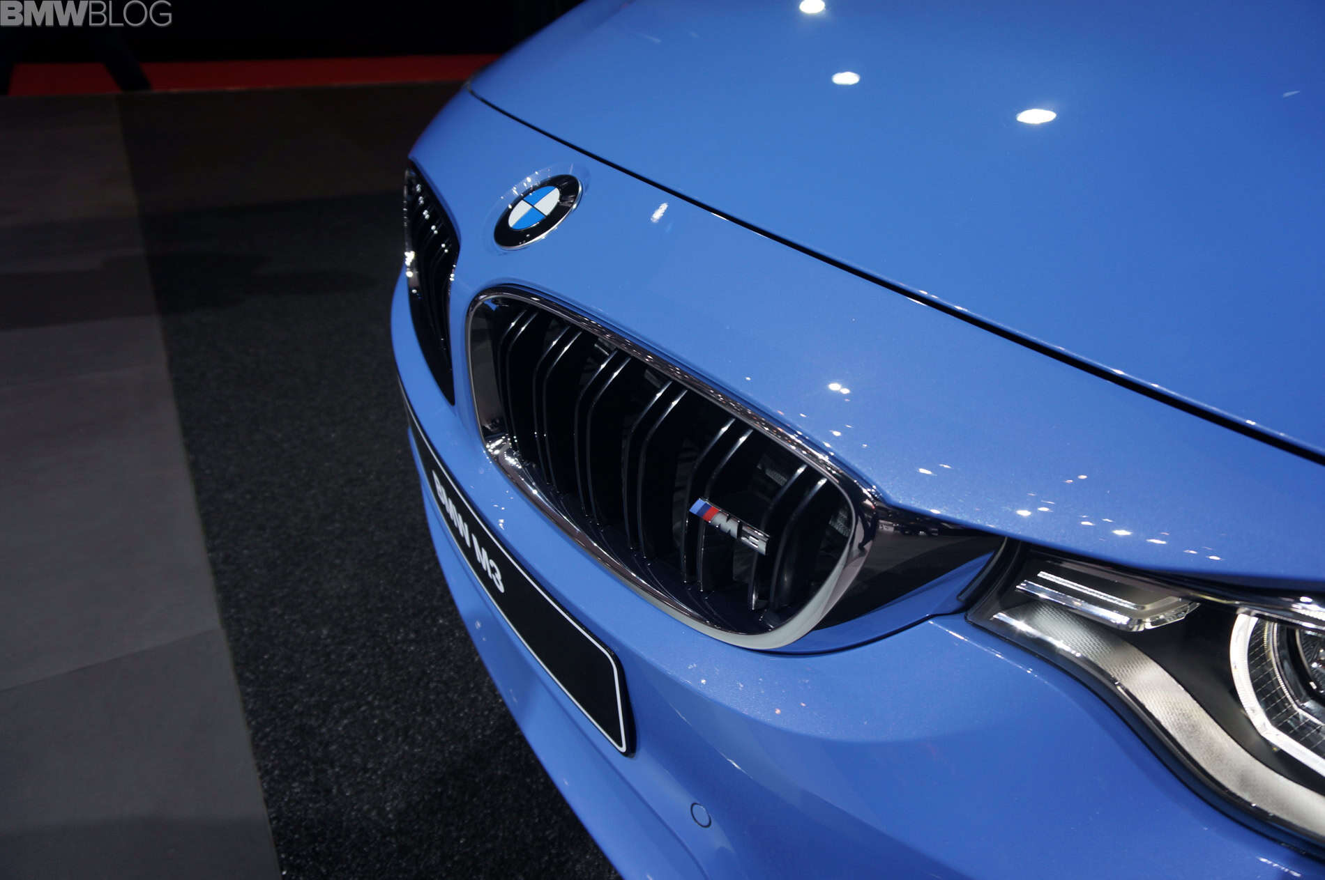 The display model sports the Yas Marina Blue paint job which is also available for the M4 Coupe. The M3 Sedan and M4 Coupe can be ordered in Alpine White, Sakhir Orange, Black Sapphire, Silverstone, Mineral White, Mineral Grey, Austin Yellow and Yas Marina.
