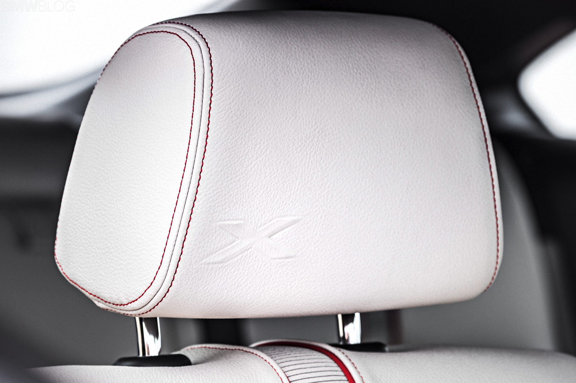Upon opening the doors, passengers are greeted with door sill finishers featuring the “BMW xLine” logo. The cloth/leather seat upholstery Carve in Amber/black with contrast stitching in Active Red promises high comfort in the interior.