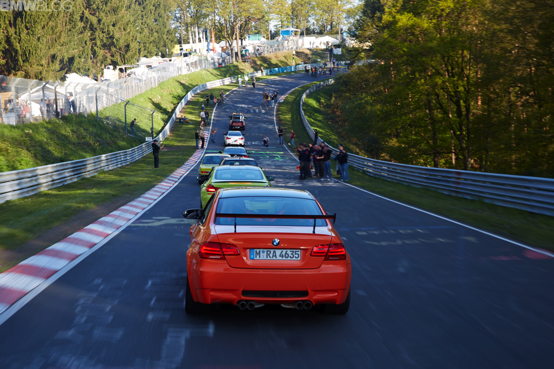 After a couple of hours of socializing and admiring each others cars, the 200 cars caravan lined up for a long lap of the most famous race track in the world. Hundreds of thousands of visitors are sitting sideline – it’s the 24 Hrs of Nurburgring weekend after all – and were cheering the special M cars on the track.