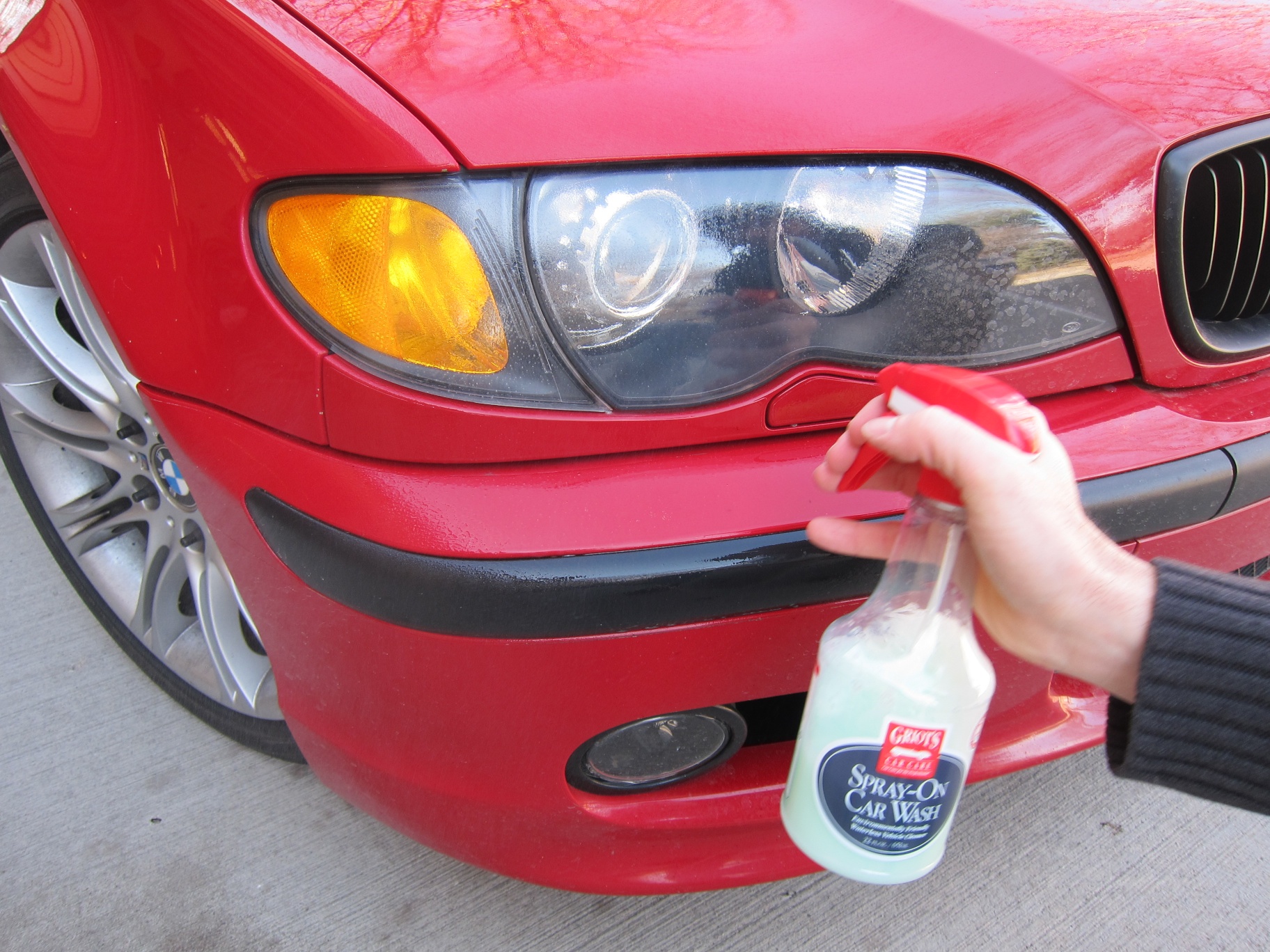 Step one. Get your car dirty. No problem here. I just ordered a light snow storm for my drive home from work. It was less than an inch but still enough to get my 2005 BMW 330i ZHP dirty from its wash the day before. For about five years now Griot’s Garage has offered Spray-On Car Wash whose bottle conveniently has directions on the back.