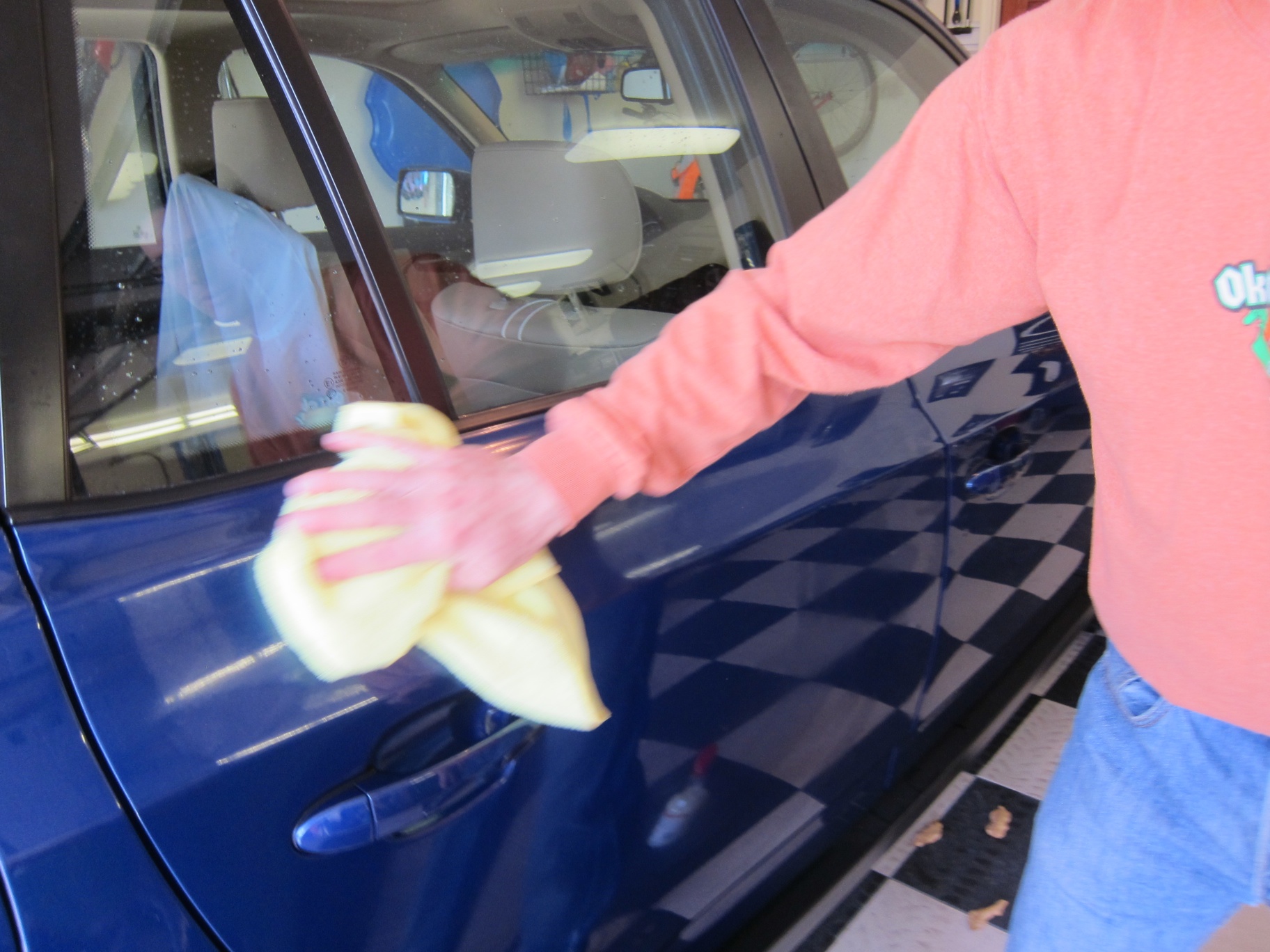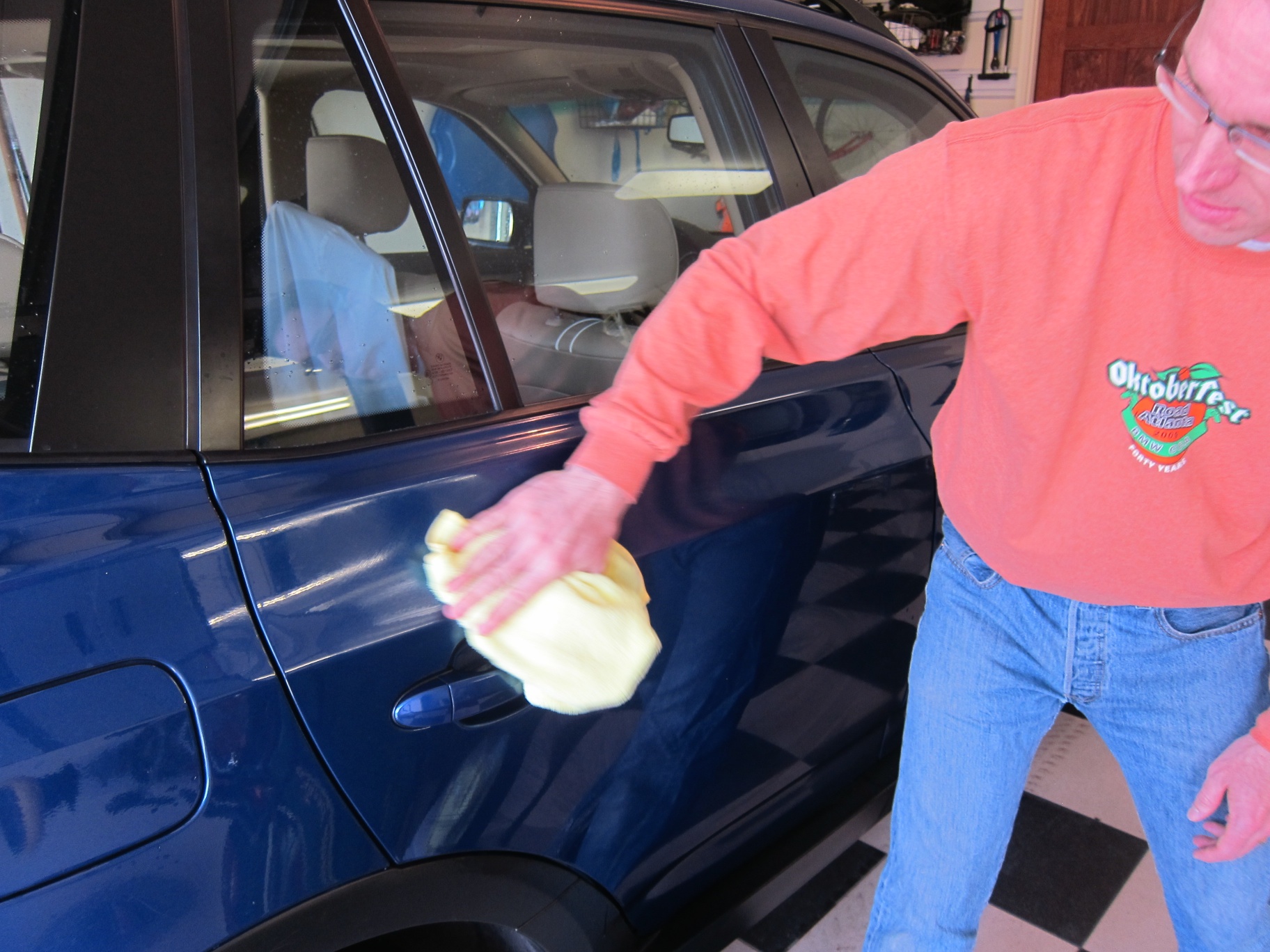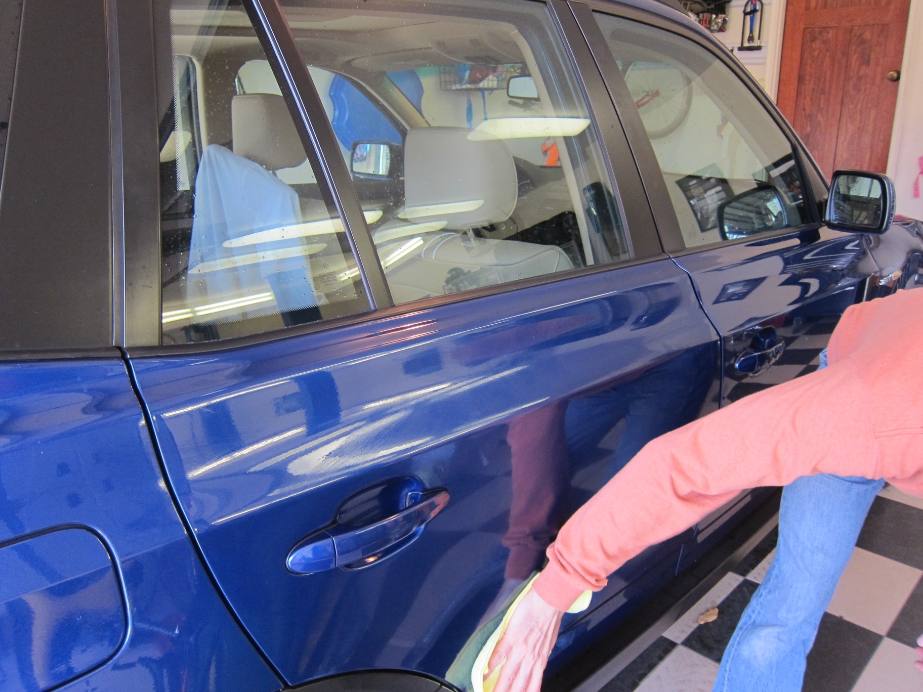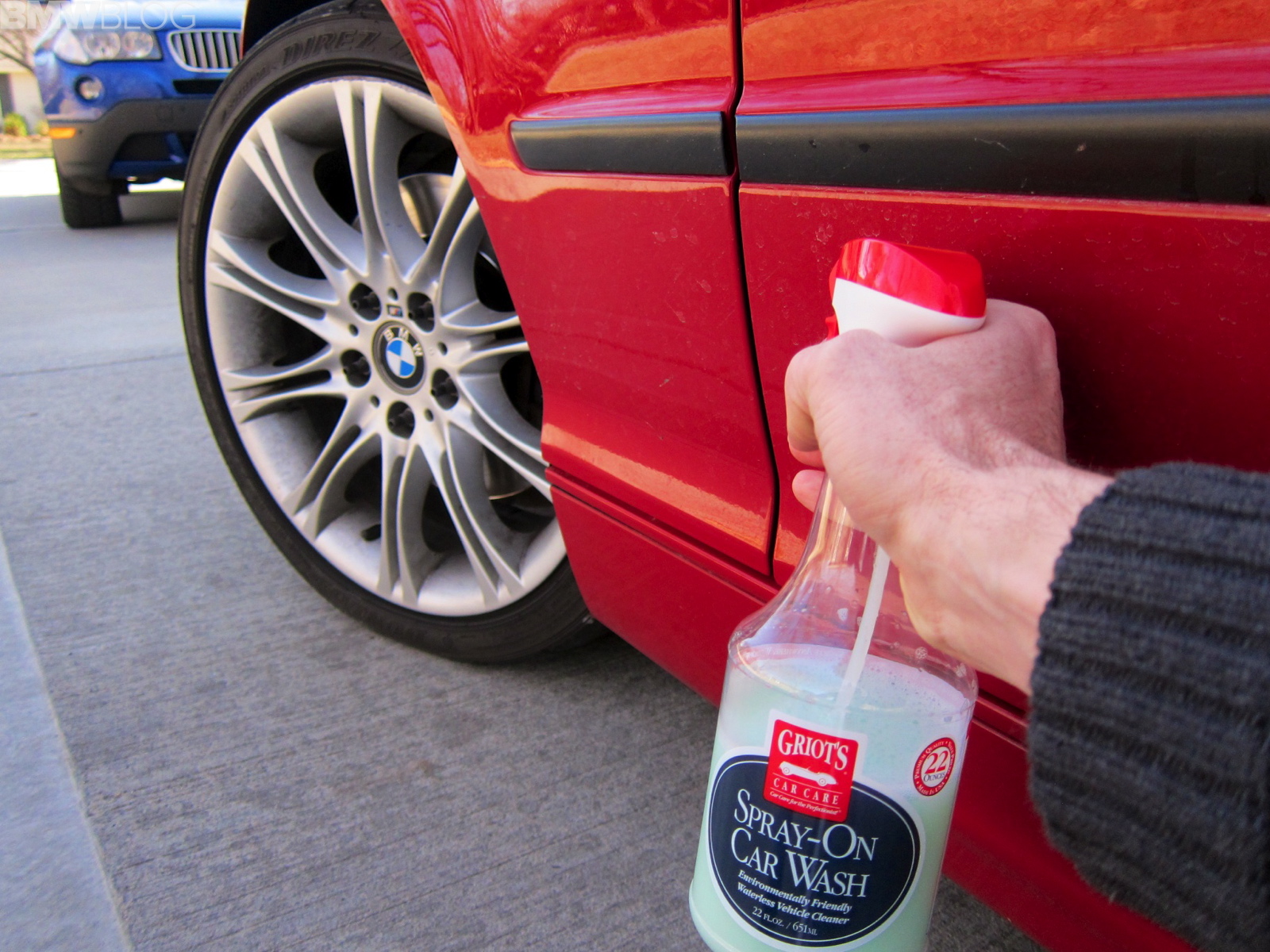 After washing our BMW X3 3.0si from top-down, I did decide to try Griot’s Spray-On Wax. The directions recommend to spray it on right after washing the car while the surface is still wet. It took a bit of buffing action to get the water dried out and the wax distributed, but it was a quick process. The wax does give a nice shine and is supposed to extend times between traditional waxing.