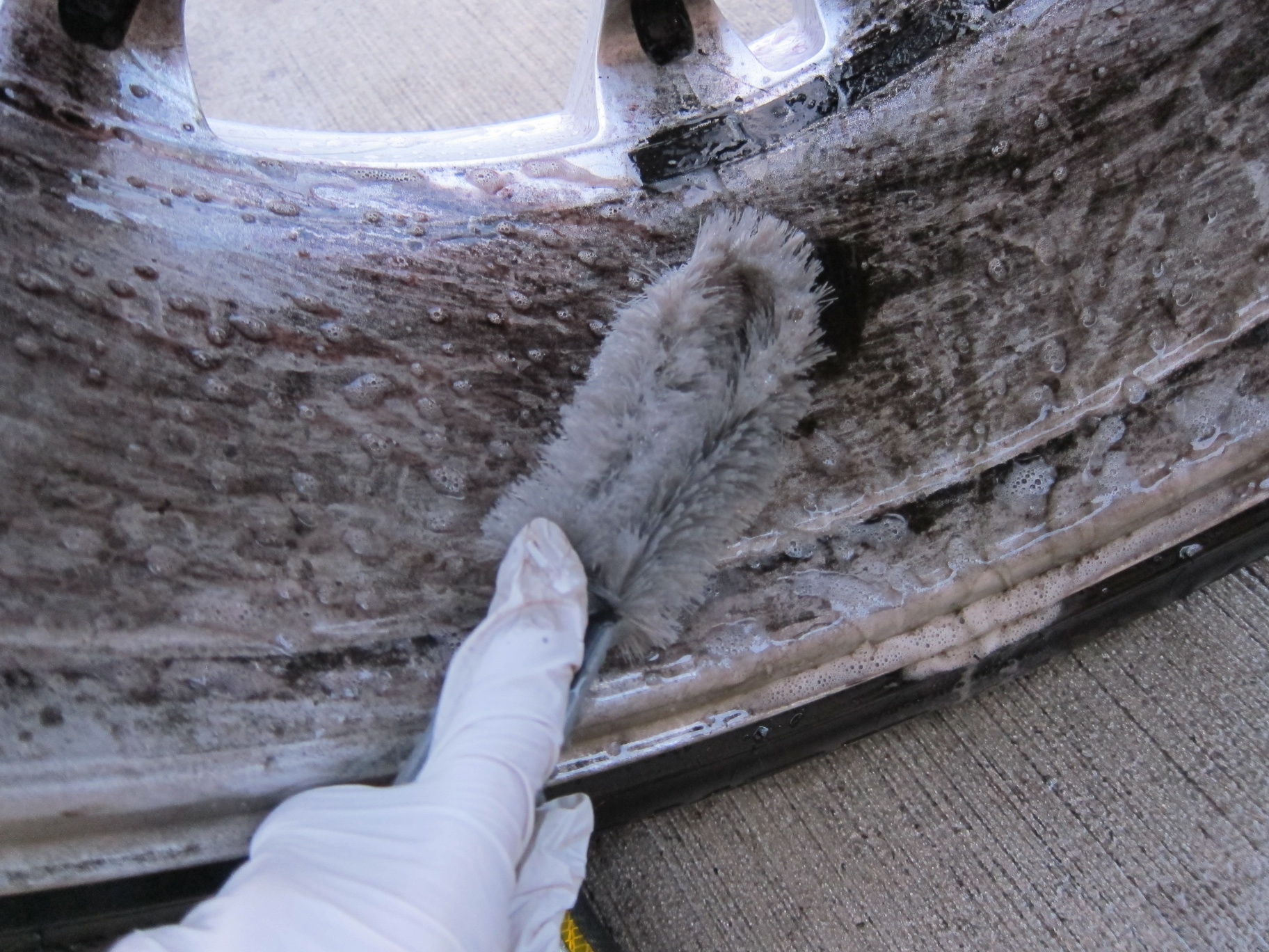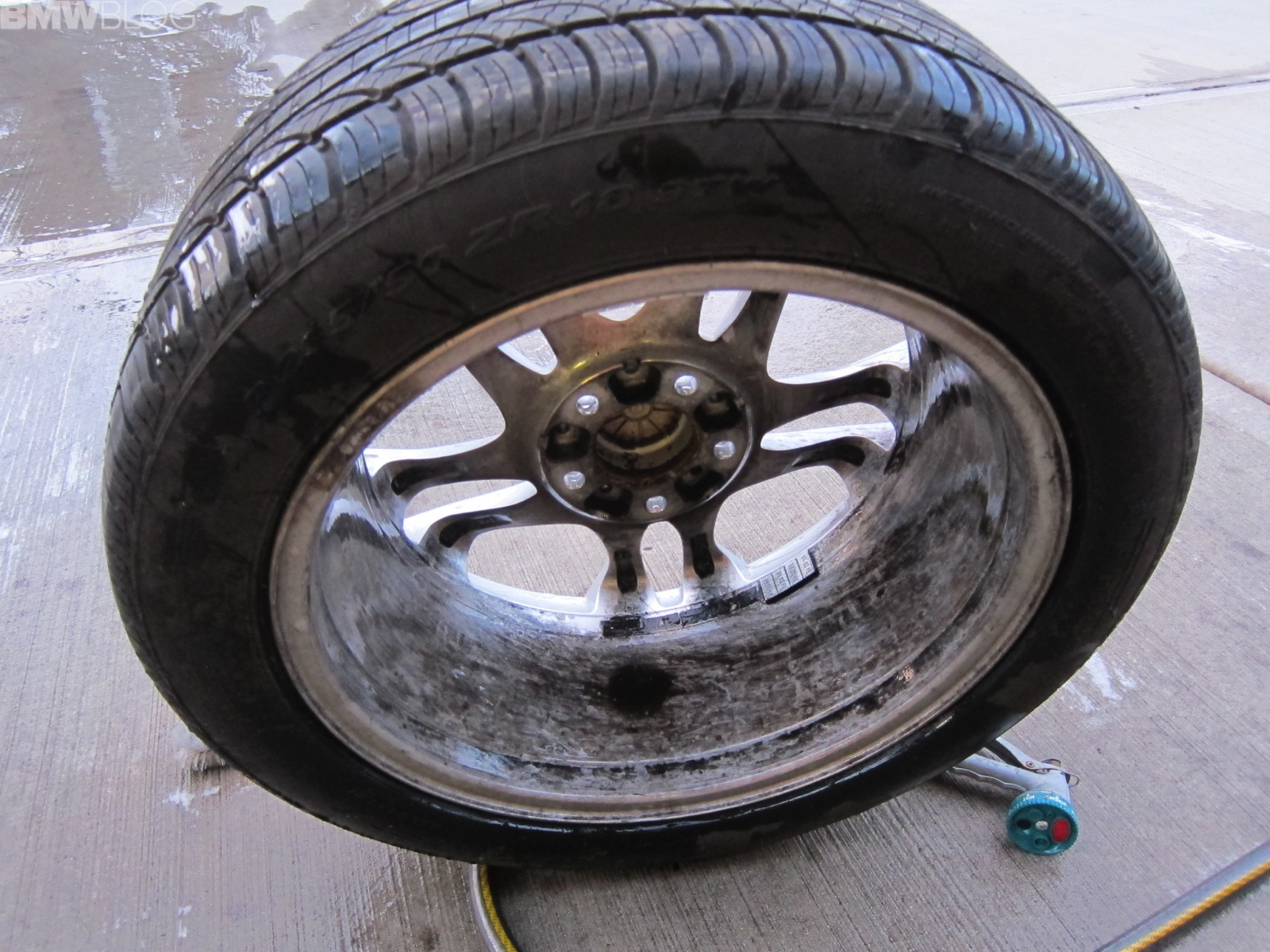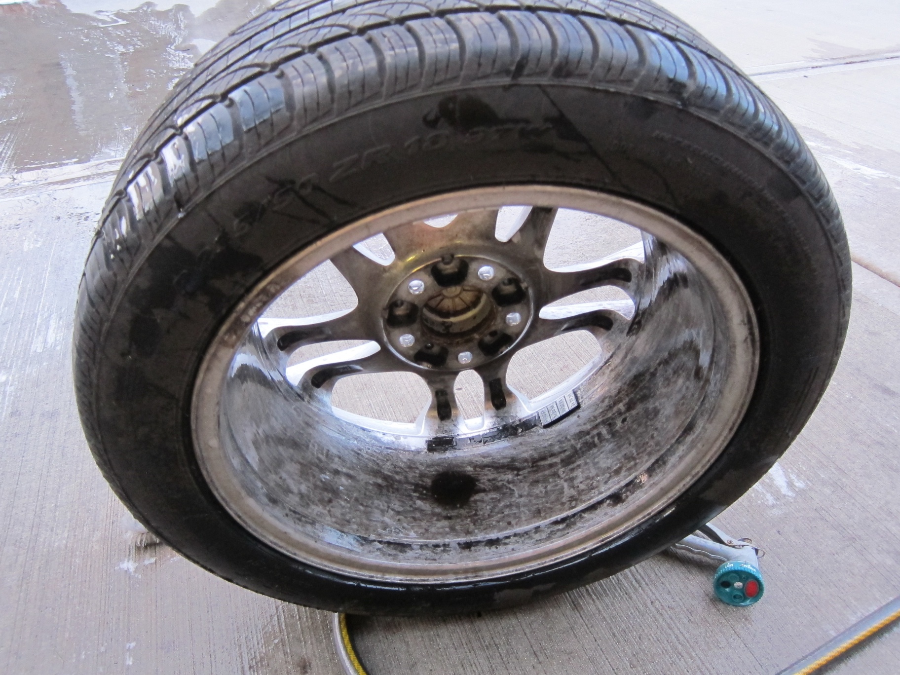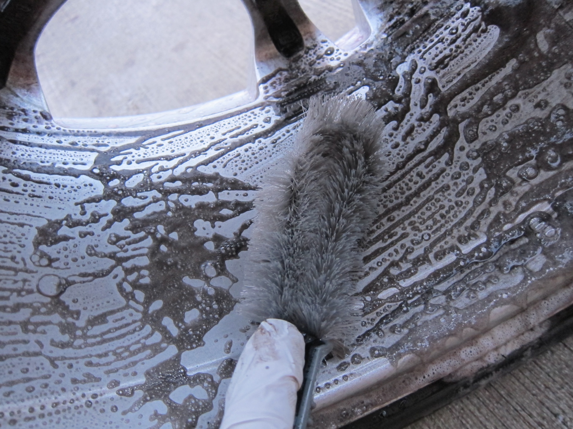After about a minute or so, I began using a detailing wheel brush. Hosing the wheel off revealed a very clean wheel. After drying off some parts of the wheel with a cloth, I ended up with perfectly cleaned wheels.