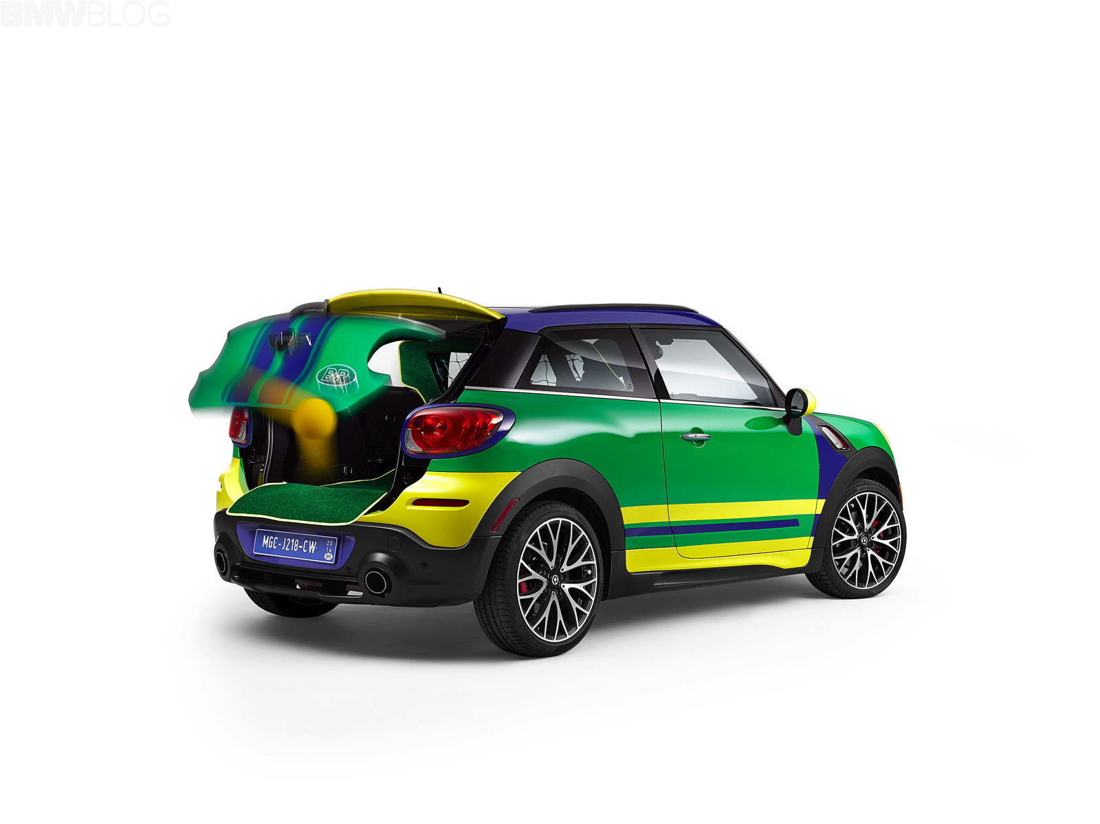 This top international player is based on the MINI John Cooper Works Paceman, and is equipped with all it takes to make it from the group stages through to the final. The MINI Design Team captained by Oliviero Weilinho combined the colours green, blue and yellow to come up with the exclusive Danielson multi-coloured exterior line, giving MINI an early 1:0 lead.