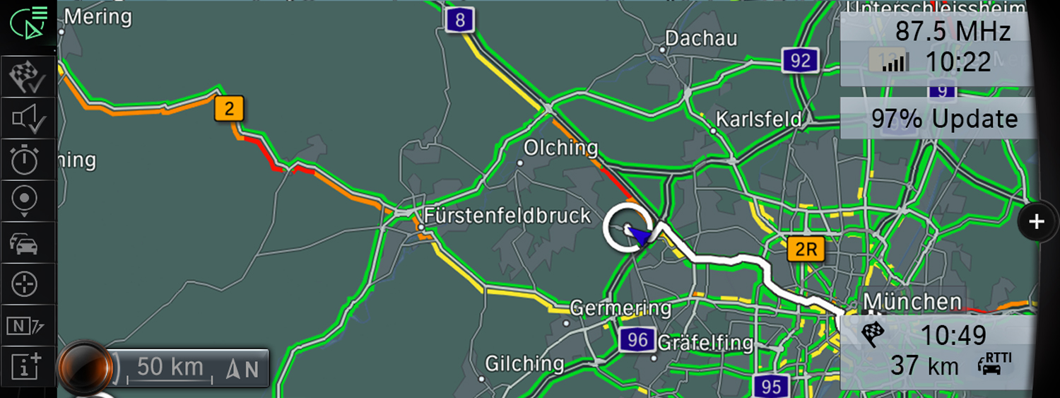 The system is regularly updated and this happens several times a year if a new map version is available. The progress of the update is displayed in the Control Display. Installation is convenient and completely autonomous. This system provides the latest map software as a basis for perfect navigation without any delays. During the updating process, all navigation functions are available without any restrictions. No registration is required for automatic updating and users do not have to log on to a portal.