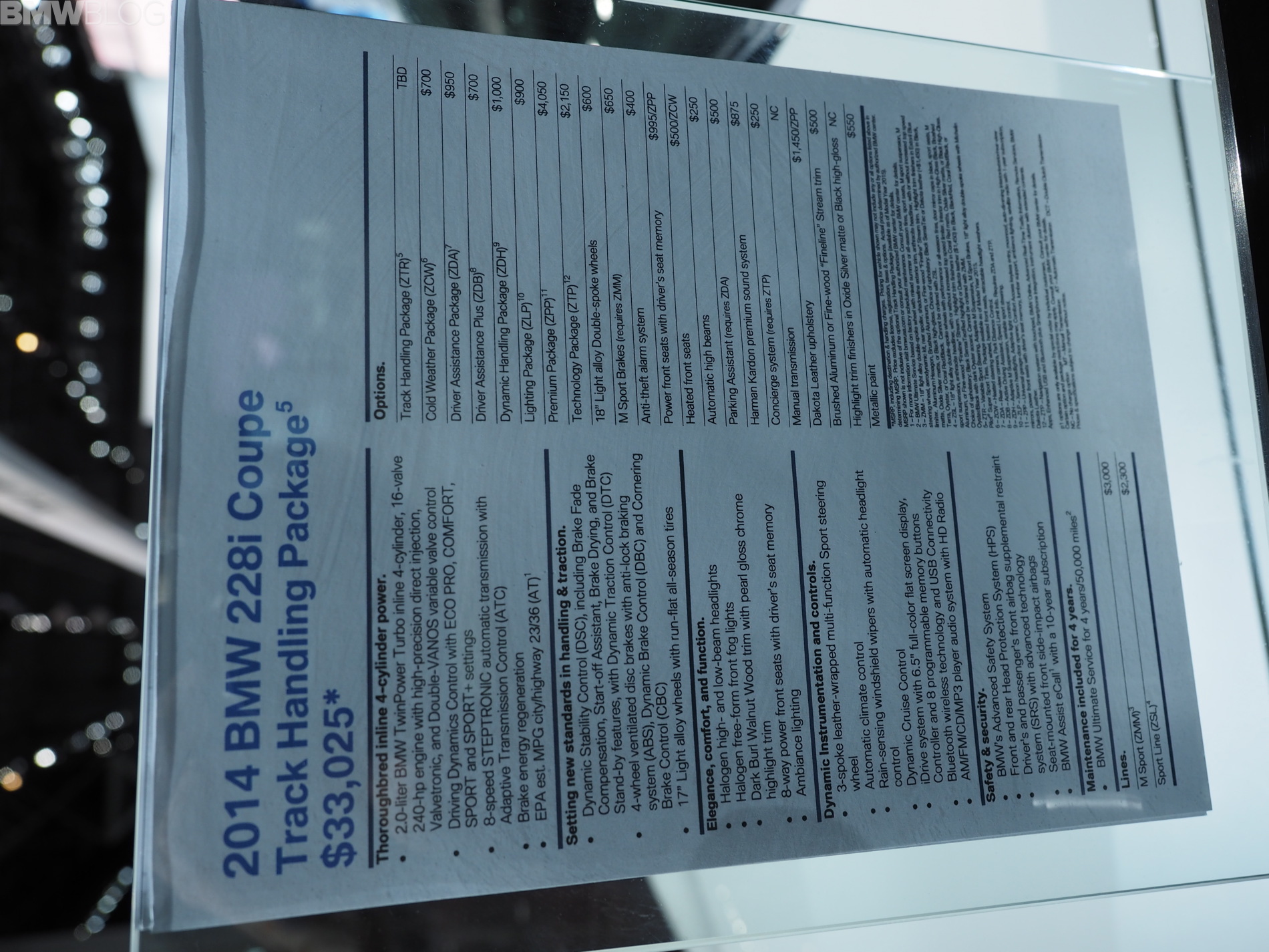 The package will be available from July 2014 (production) for both 6-speed manual and 8-speed Sport Automatic transmission-equipped BMW 228i Coupe models. The Track Handling Package may be added to any 228i Coupe during the vehicle ordering process.