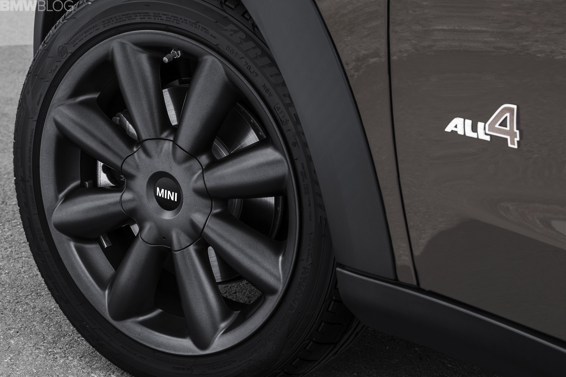Extravagant and powerfully expressive body design with horizontal lines, dynamic proportions and powerfully modelled surfaces in hallmark MINI design style; clearly signals driving fun with characteristic go-kart feeling and extended versatility due to all-wheel drive system ALL4; front section with powerful presence including hexagonal radiator grill contour; long doors with frameless windows in coupé style; high-opening tailgate; roof sits virtually seamlessly on top of the car, optionally available in contrasting colour; elongated silhouette resulting from the flowing roof line and the tapering side window graphic, now additionally emphasised with the new option Piano Black Exterior; new standard and optionally available light alloy wheels with reduced weight and optimised aerodynamic properties; other optional features: tyres with reduced rolling resistance; new exterior paint finishes Jungle Green metallic and Midnight Grey metallic.