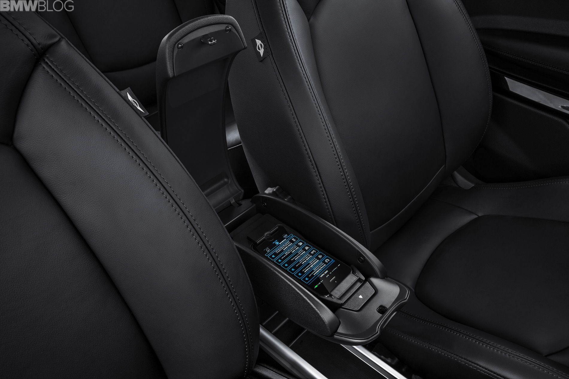 Driving fun and comfort at premium level with extensive standard trim and a wide range of customisation options; high-end selection of optional extras, including new LED fog lamps with daytime driving lights and parking lights in LED technology as well as xenon headlamps and adaptive turning light, comfort access, glass push/tilt roof, automatic air conditioning, removable tow hitch with a trailer load of up to 1 200 kilograms, MINI navigation system, Sport Button, sports leather steering wheel with shift paddles for automatic transmission, multifunction steering wheel with cruise control Harman Kardon hi-fi speaker system; model-specific John Cooper Works accessories also available.