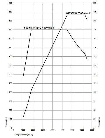Its performance curve is outstanding: its maximum power is available over a wide plateau of 5500 to 7300 rpm – and its maximum engine speed is as high as 7600 revolutions per minute.