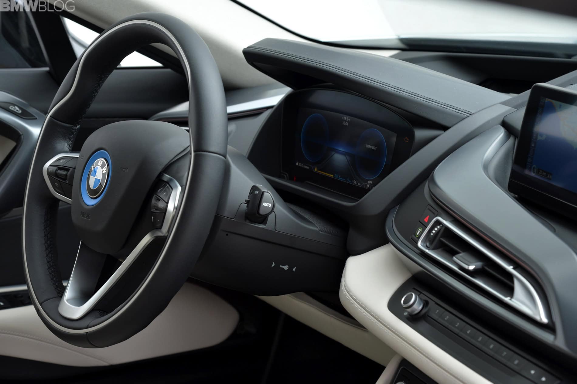 The 4.2-second claimed acceleration of the i8 up to 60 mph will hold true for certain. In Sport mode and ready to rumble, the 1.5-liter B38, with 24.7-psi maximum boost from the Conti turbocharger, is always on, even at stops where it would switch off in Comfort mode. At full boost – i.e. the B38, Bosch e-motor and 15-bhp secondary e-motor bolted to the ICE to help coordination (the “seamlessness”) between EV and hybrid mode-switching while on the fly – you get all the sound that BMW’s amplification scientists can muster from the three-cylinder. There is also a second amplifier arranged for the exhaust tone and it does sound pretty damned good to me and (apparently) to all passers-by.