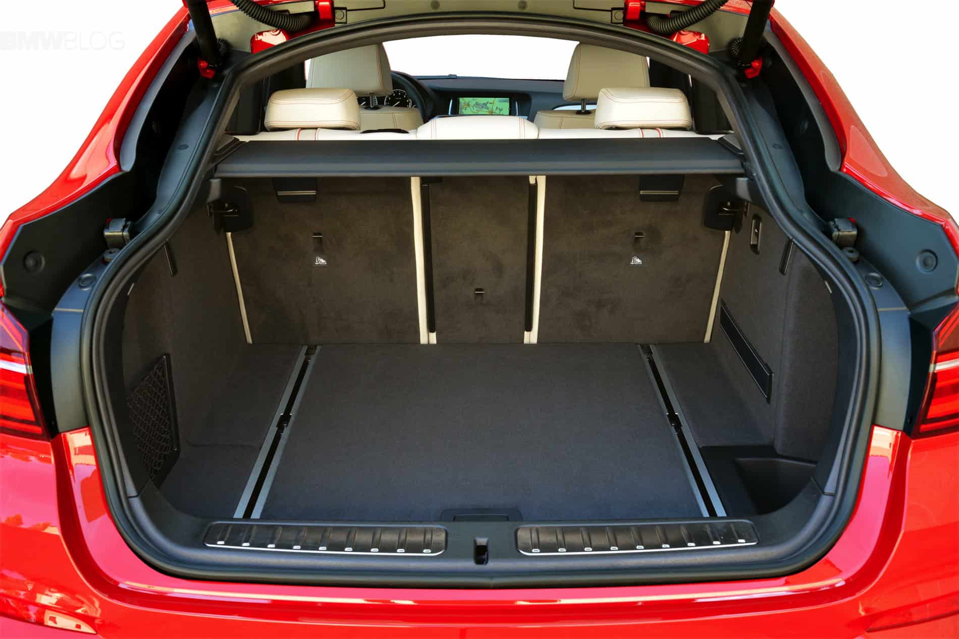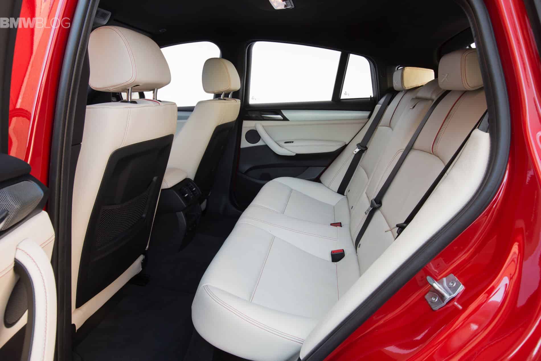 Inside, the X4 is nearly identical to the X3’s, and offers similar trim and leather options, made out of high-quality materials. The front seats are BMW-like, wrapping around your body and offering plenty of back support even in the most devilish curves. As expected, rear seating suffers a bit from lack of space, considering the smaller dimensions and the sweeping roof, reduced leg support was not a surprise to anyone. BMW says the X4 is a car for five people, but four is more what they aim to comfortably carry them around.