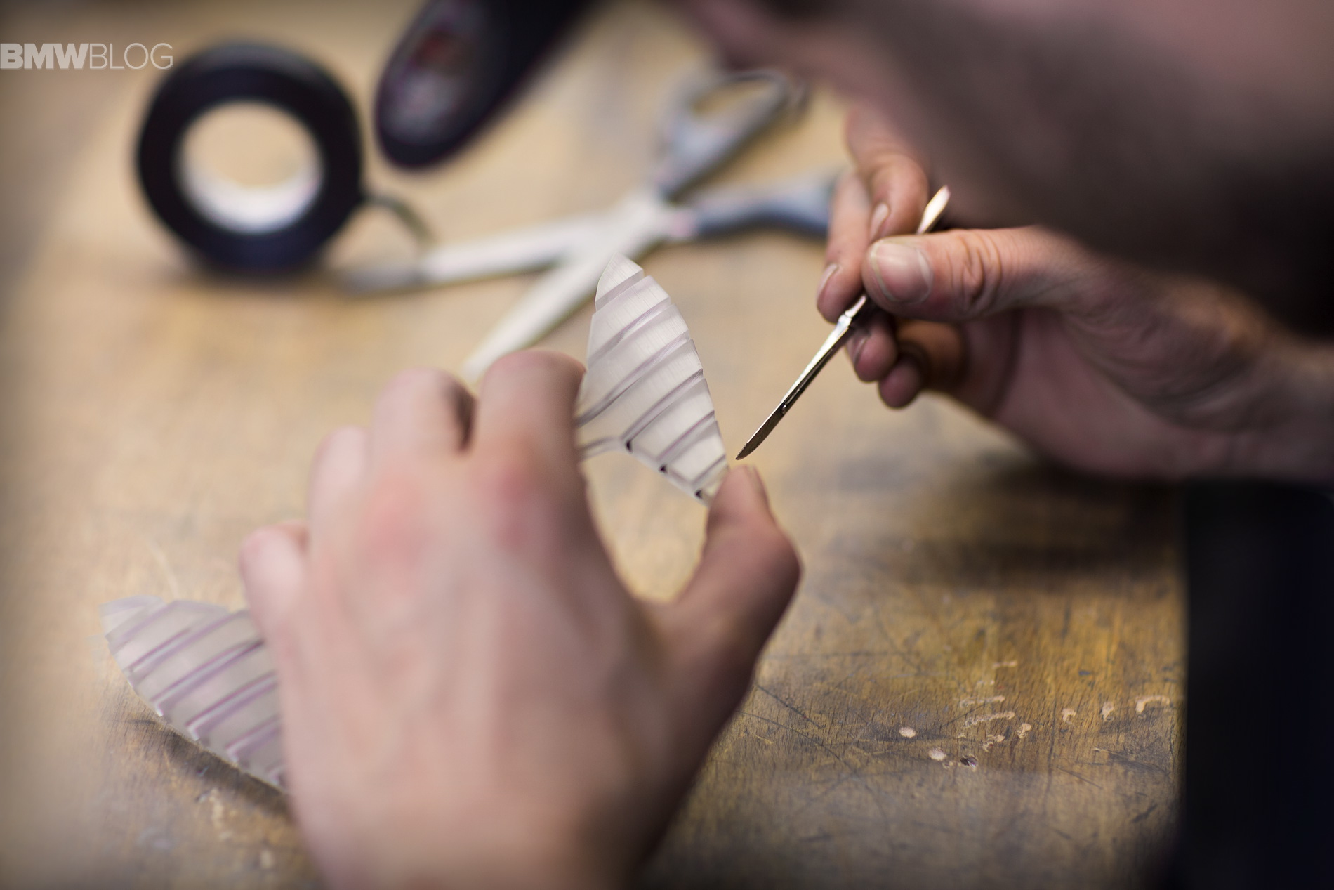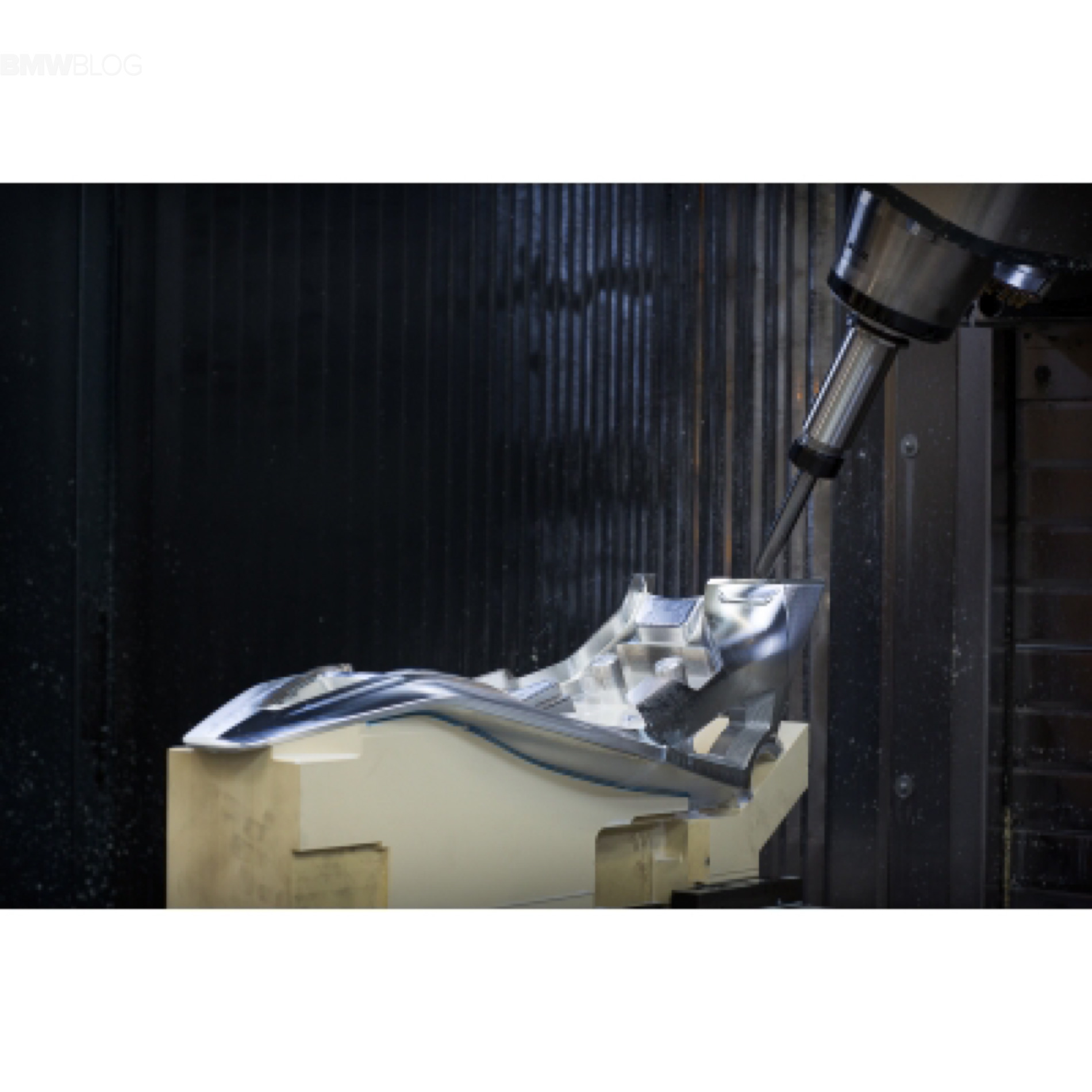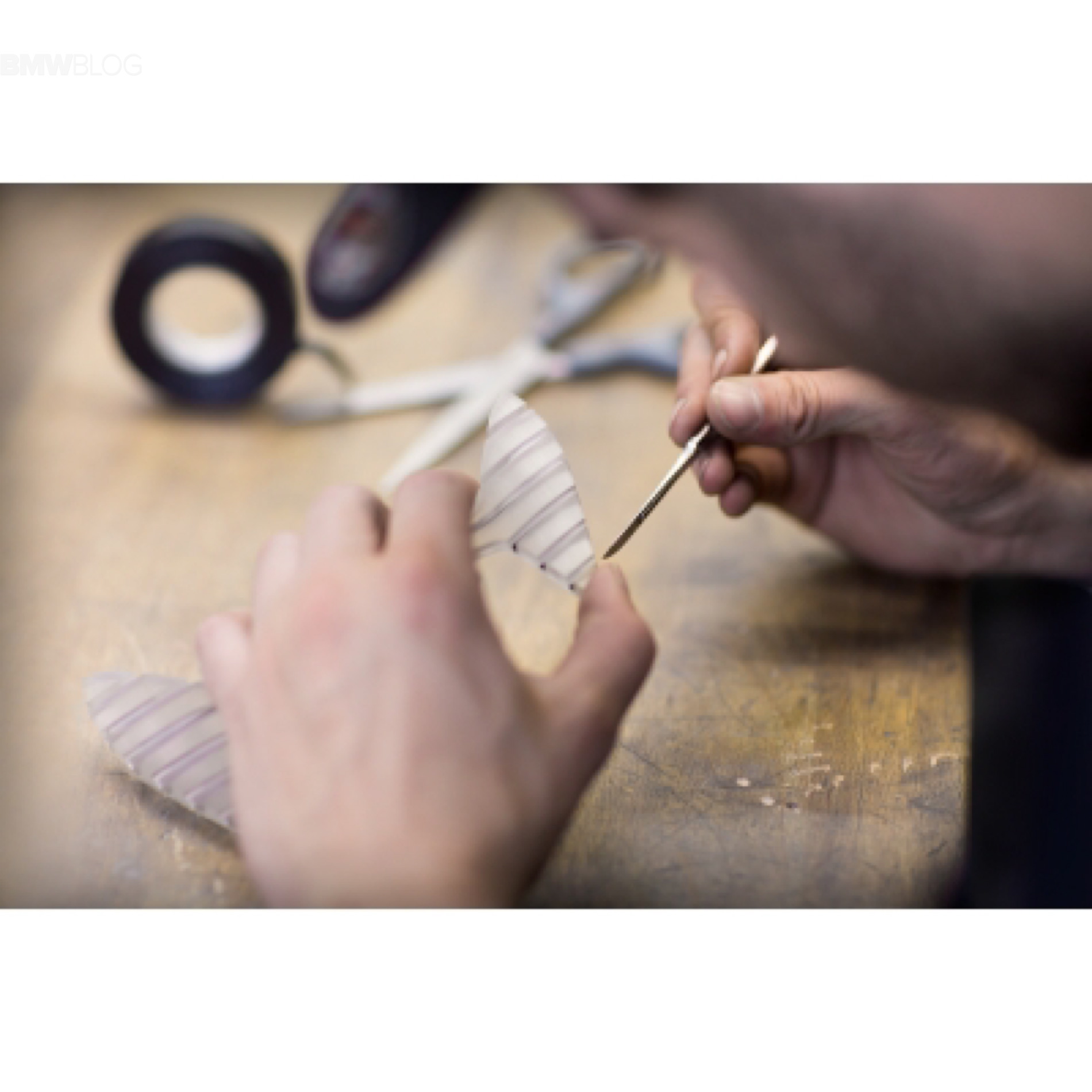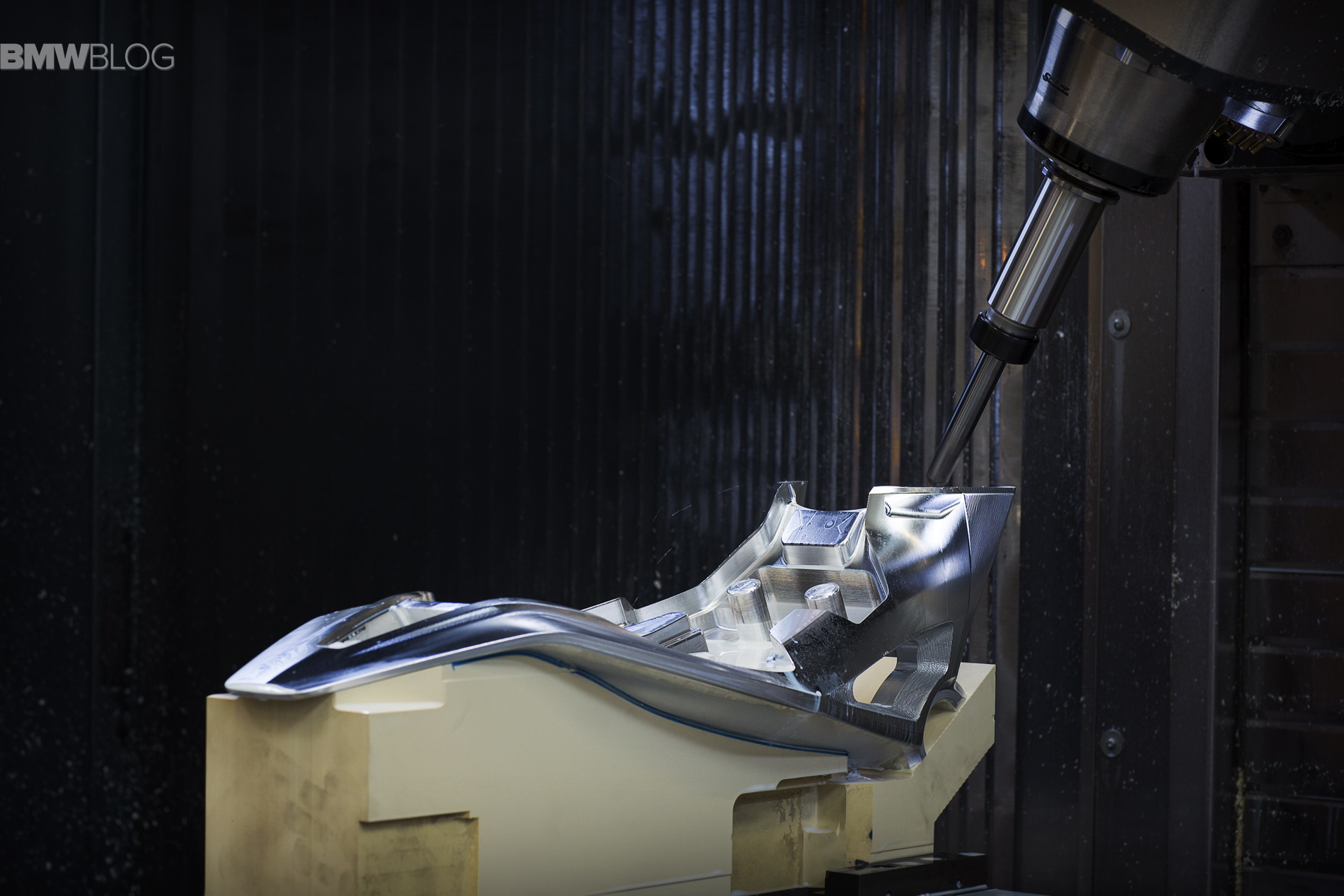 In addition to the rear structure, there are other milled aluminium parts which underscore the technically sculptured look from the side perspective. The most prominent features here are the lateral air intakes. They are also made of gloss aluminium with milling marks and are shown to excellent effect against the black surfaces of the radiator. They trace a triangle open to the front which is formally based on the “gill” elements of the BMW supersports motorcycles. Performing the function of channelling air to the radiator, they also emphasise the dynamic gesture of the side. The cooling ribs in Neon Yellow inside them are only seen on closer inspection.