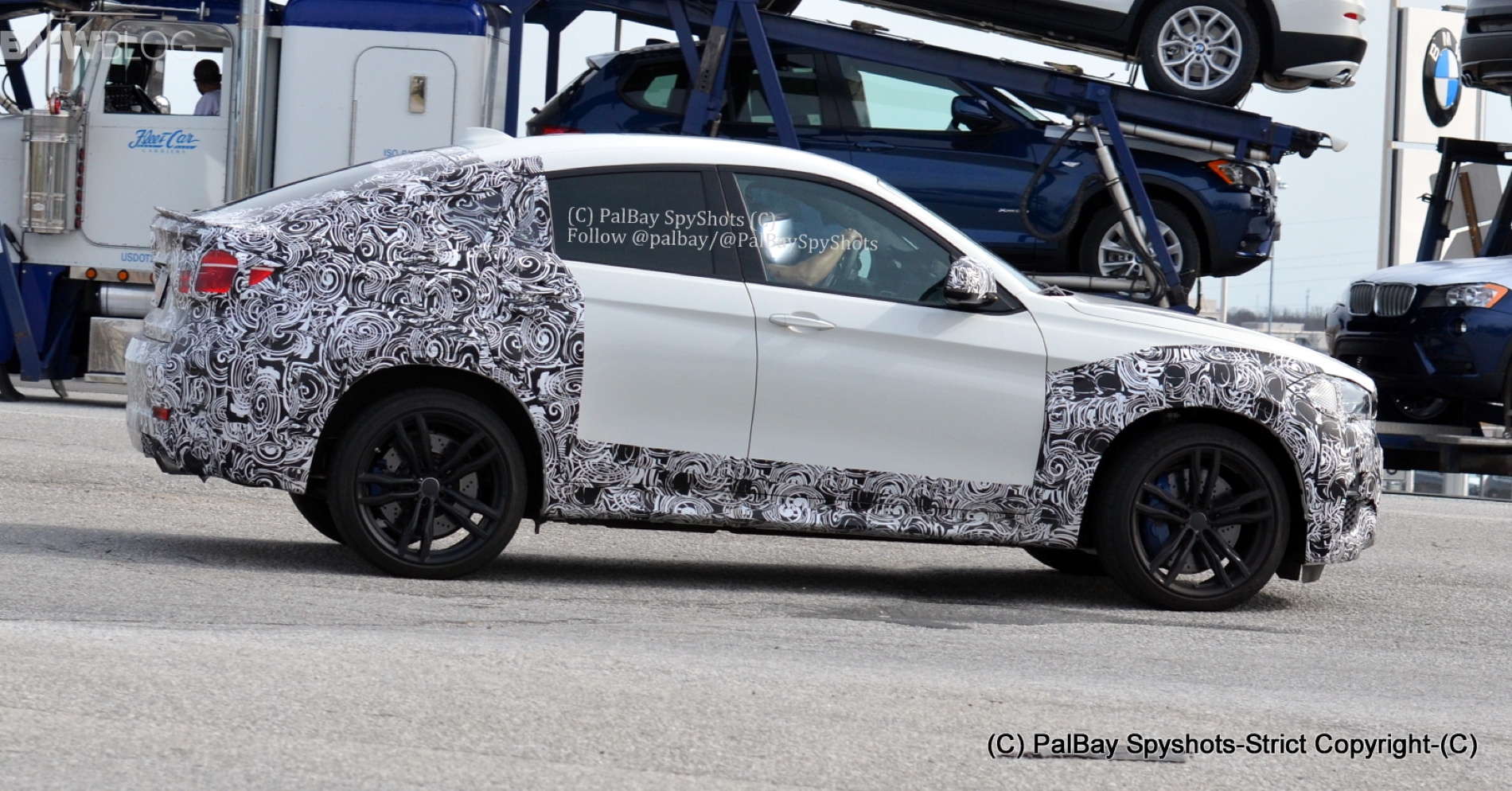 These latest spy photos come from the usual spy photographer Palbay and gives us a fair look at the design of the new X6 M. Despite being still kept under wraps, the F86 X6 M reveals some of the typical M elements: dynamics front end with large air intakes, flared fenders, larger side skirts and the twin double exhaust tips. The 2016 BMW X6 comes with air breathers on the sides, a trademark now on all new BMW models.