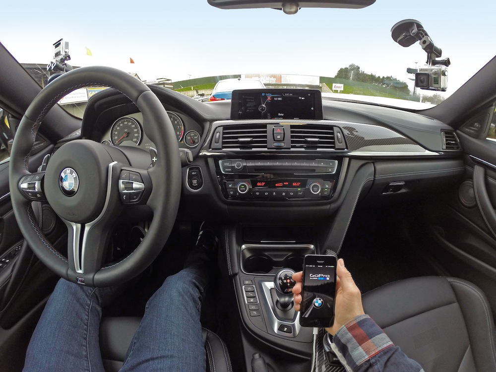 “Now, BMW and MINI owners have GoPro camera control directly through either the iDrive or MINI Connected with any Wifi-enabled GoPro cameras. As we piled into the gaggle of GoPro-laden M3’s and M4’s, GoPro staff showed us just how easy it was to use the new app-based system. Upon squeezing in behind the wheel and thumbing the start button, all that was needed was to open the GoPro app on an iPhone integrated in with the M4’s iDrive system.