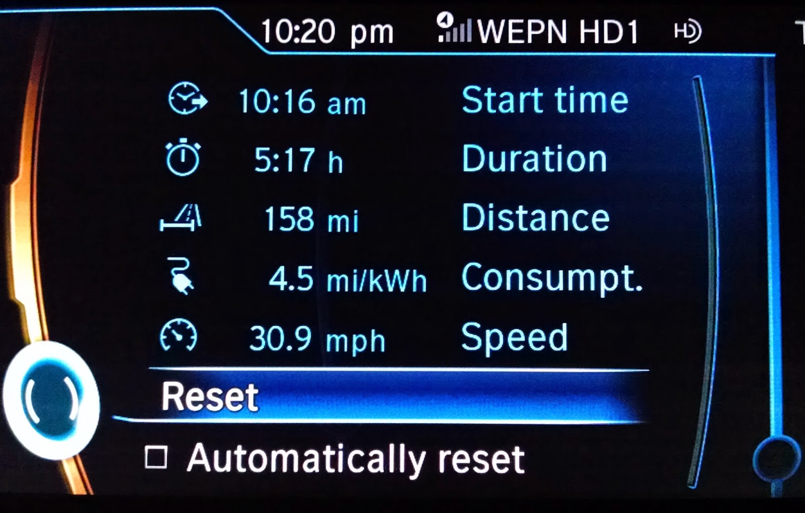 I’m sure I can push the consumption rate up to around 6 miles per kWh if I drive in Eco Pro+ mode, watch my speed and use the regenerative brakes to their full potential. But for now I’m having too much fun getting to know the car. Mashing the accelerator and feeling the instant torque every now and then is difficult to refrain from, but at some point I’ll do a real efficiency test and see how low I can go. Now that I’ve had the car for about a month, I’m starting to get some followers message me ask what I like and don’t like about it. I just want to say I have indeed been compiling a “likes and dislikes” list and I have just about enough info for a comprehensive initial review. That will most likely be the next post here so stay tuned.