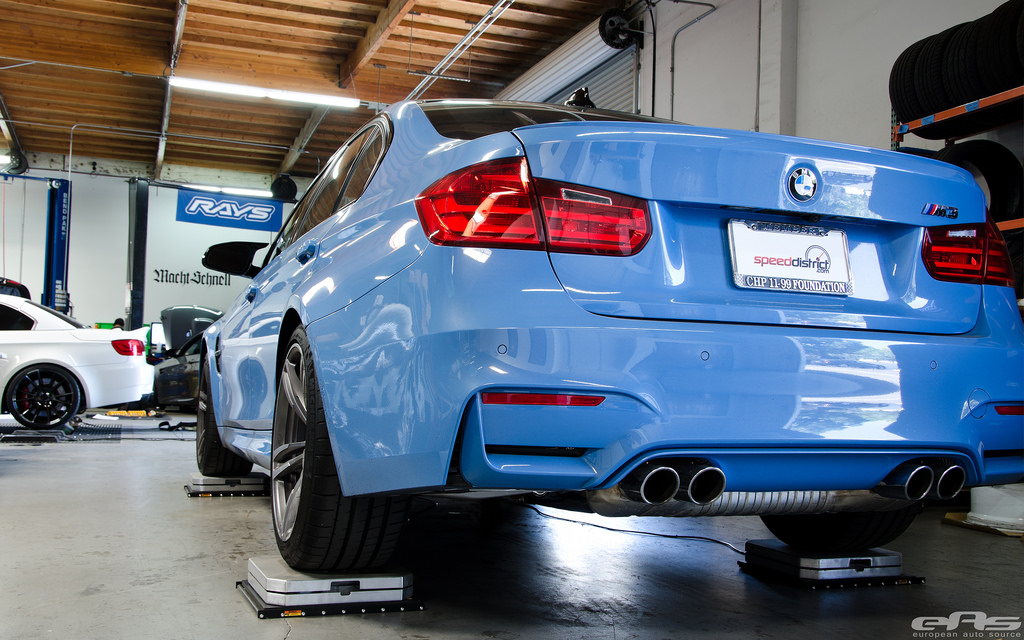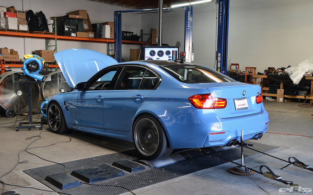 Here’s what we’ve all been waiting for – a dyno of the F80 BMW M3. A customer of EuropeanAutoSource brought his F80 M3 Yas Marina Blue to inspect it on a lift, weigh it on the scales and strap it to the dyno.