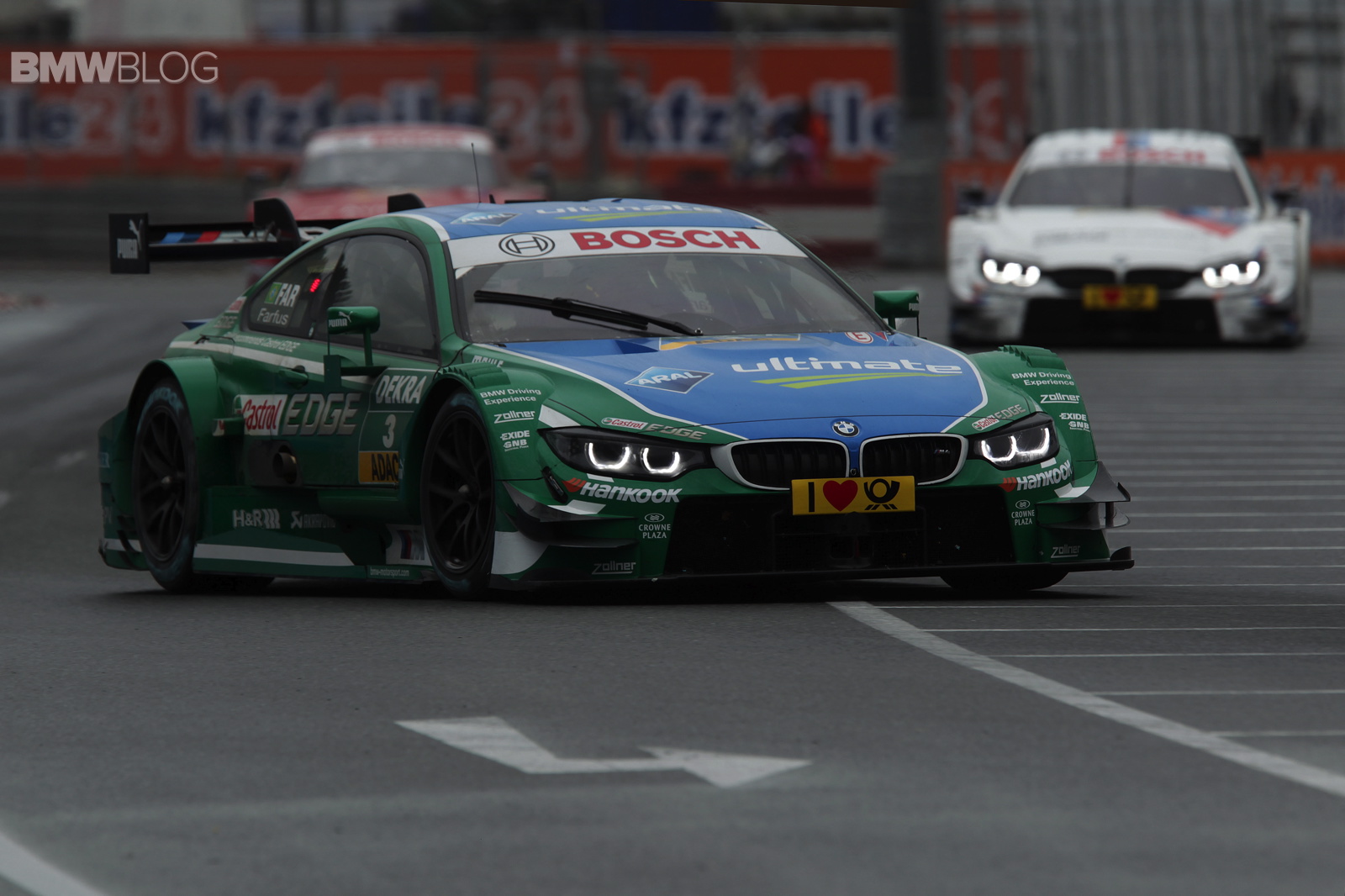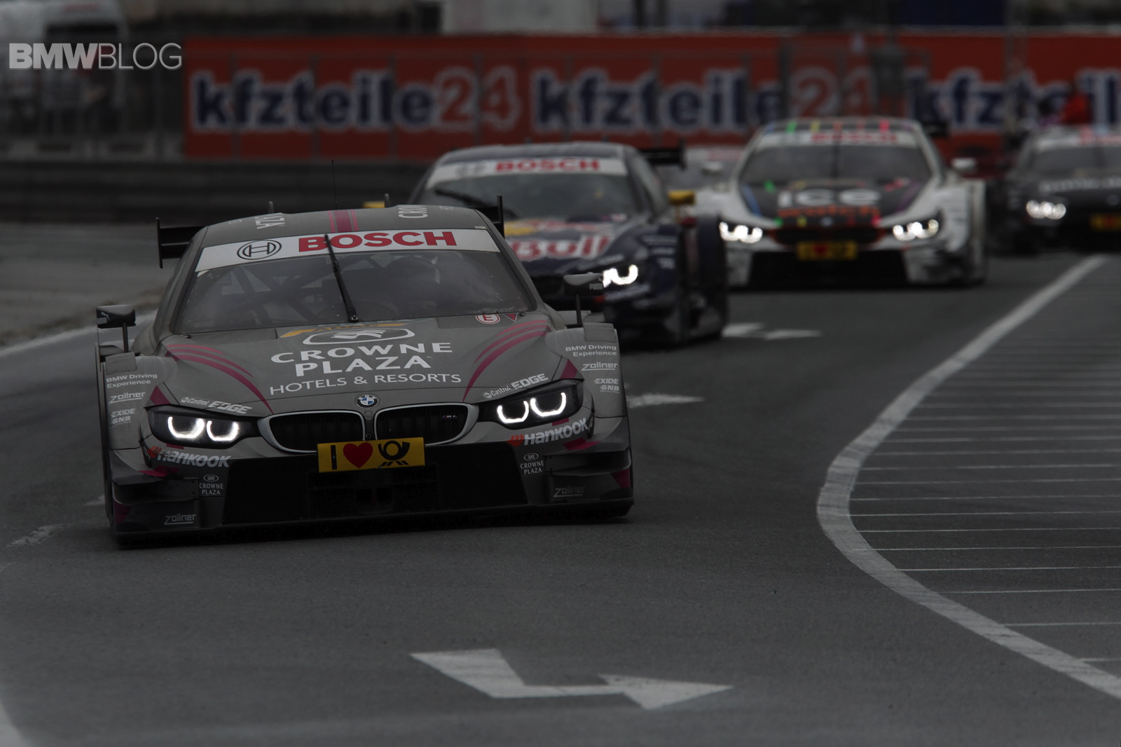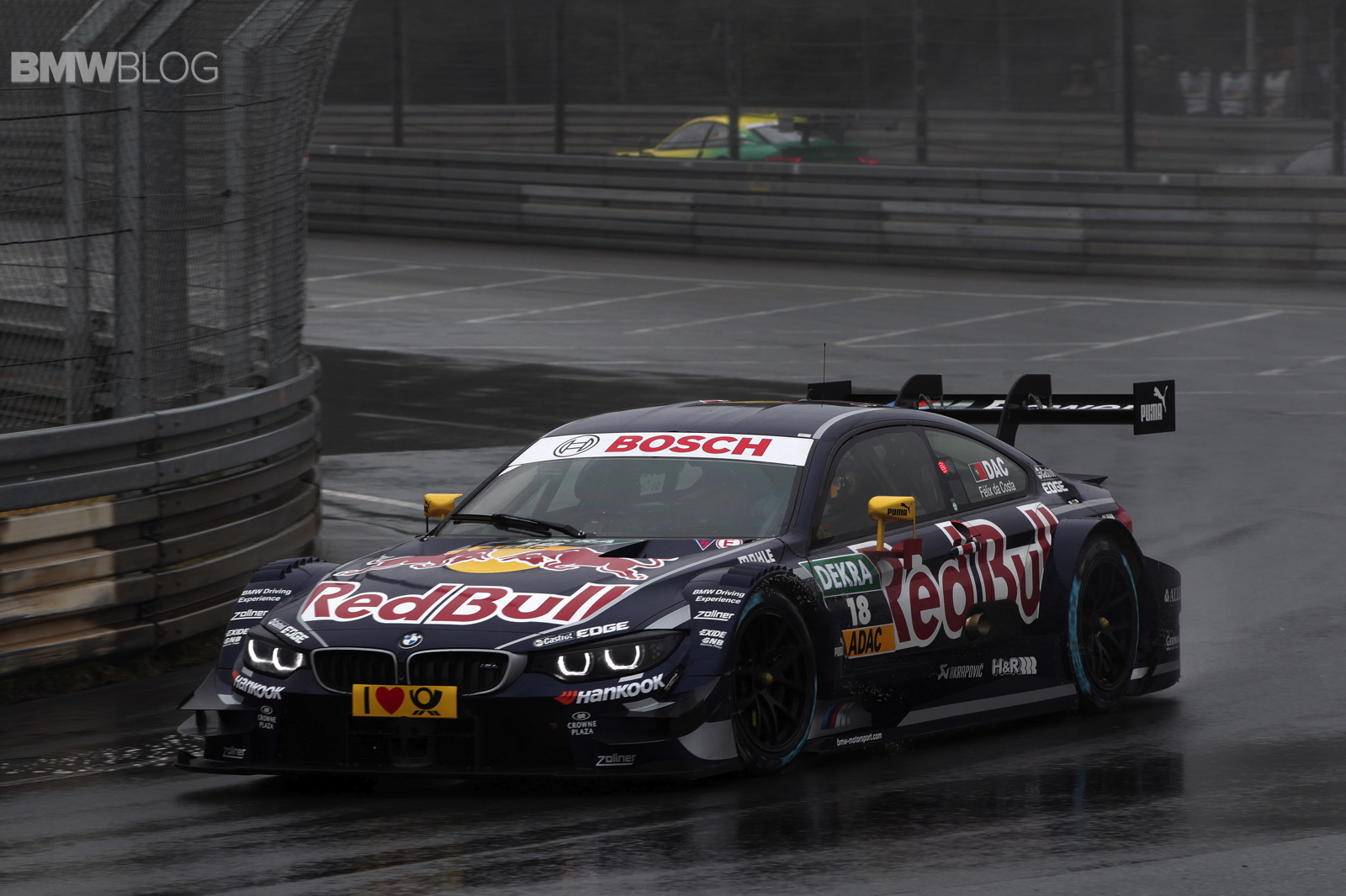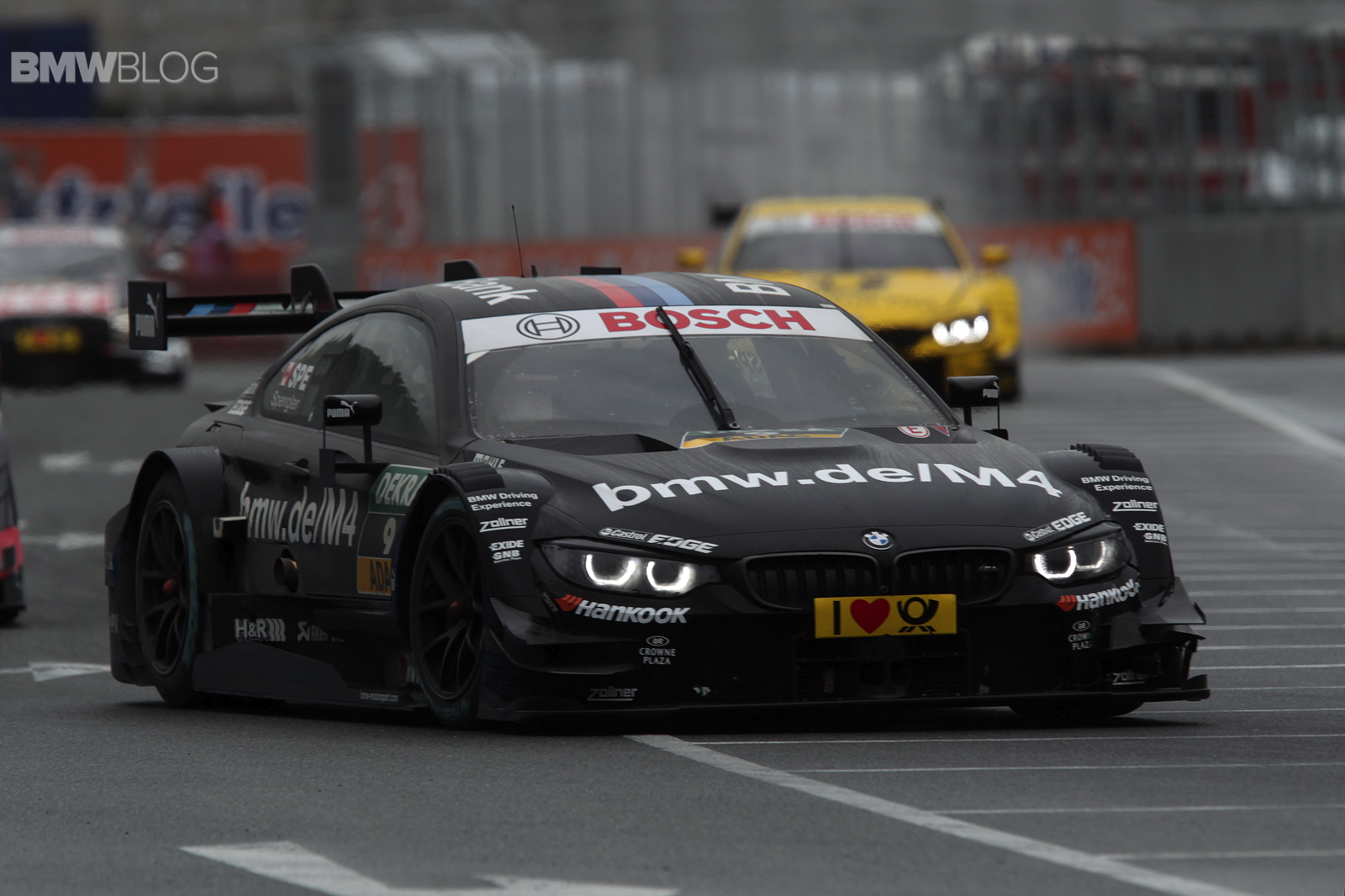Joey Hand (US), at the wheel of the Crowne Plaza Hotels BMW M4 DTM, also produced an impressive display to finish seventh behind Wittmann on a track that was wet at first but dried out as the race progressed. Victory went to Mercedes driver Robert Wickens (CA).