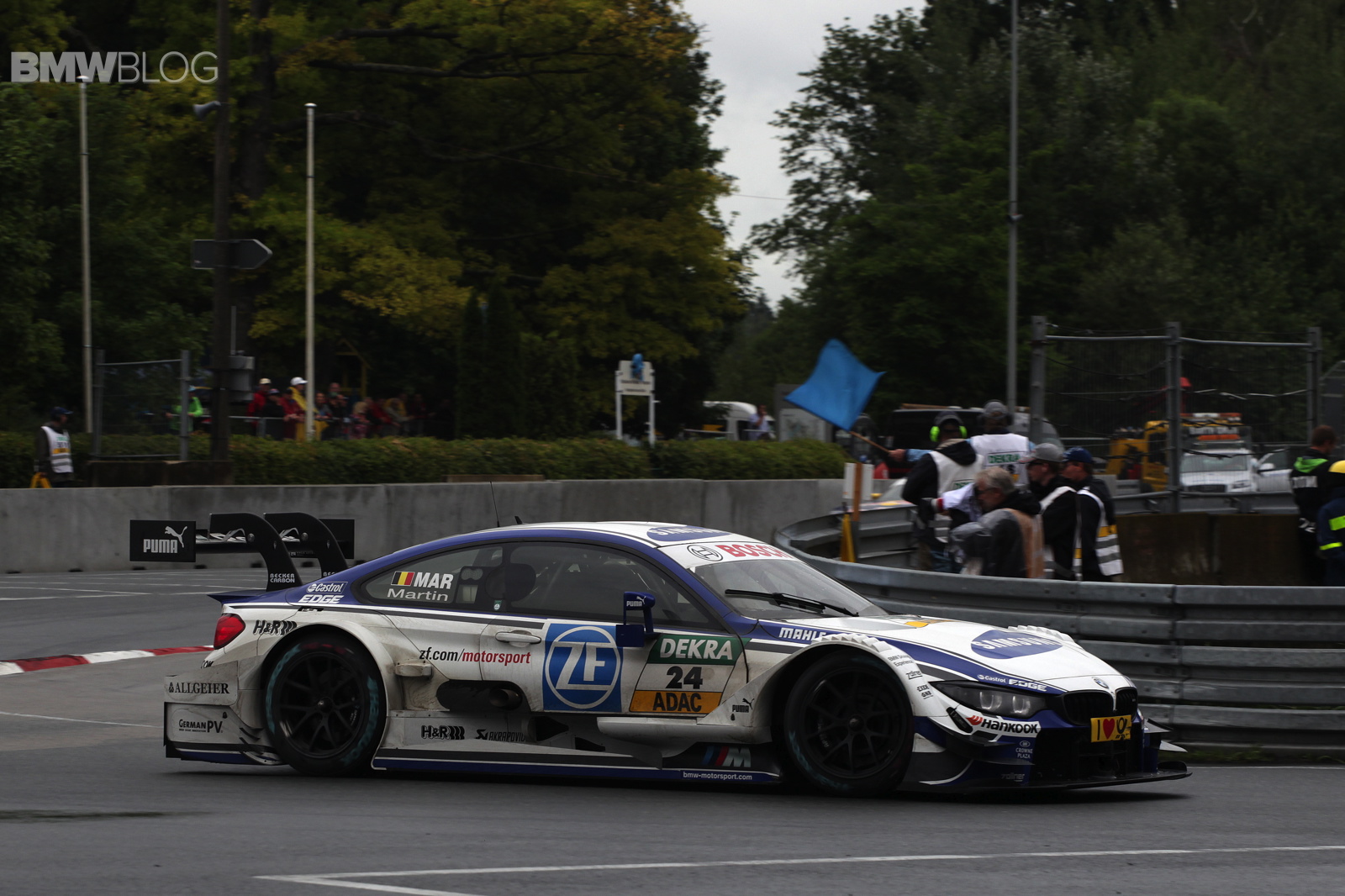 Maxime Martin (BE) demonstrated his renowned ability in the wet during the first half of the race, climbing as high as fifth place. However, he returned to the track with wet-weather tyres on the SAMSUNG BMW M4 DTM after his first stop. When the circuit then started to dry out towards the end of the race, Martin was forced to switch to slicks and dropped back into 17th. Martin Tomczyk (DE, BMW M Performance Parts M4 DTM) was forced to retire from the race following a collision with Gary Paffett (GB).