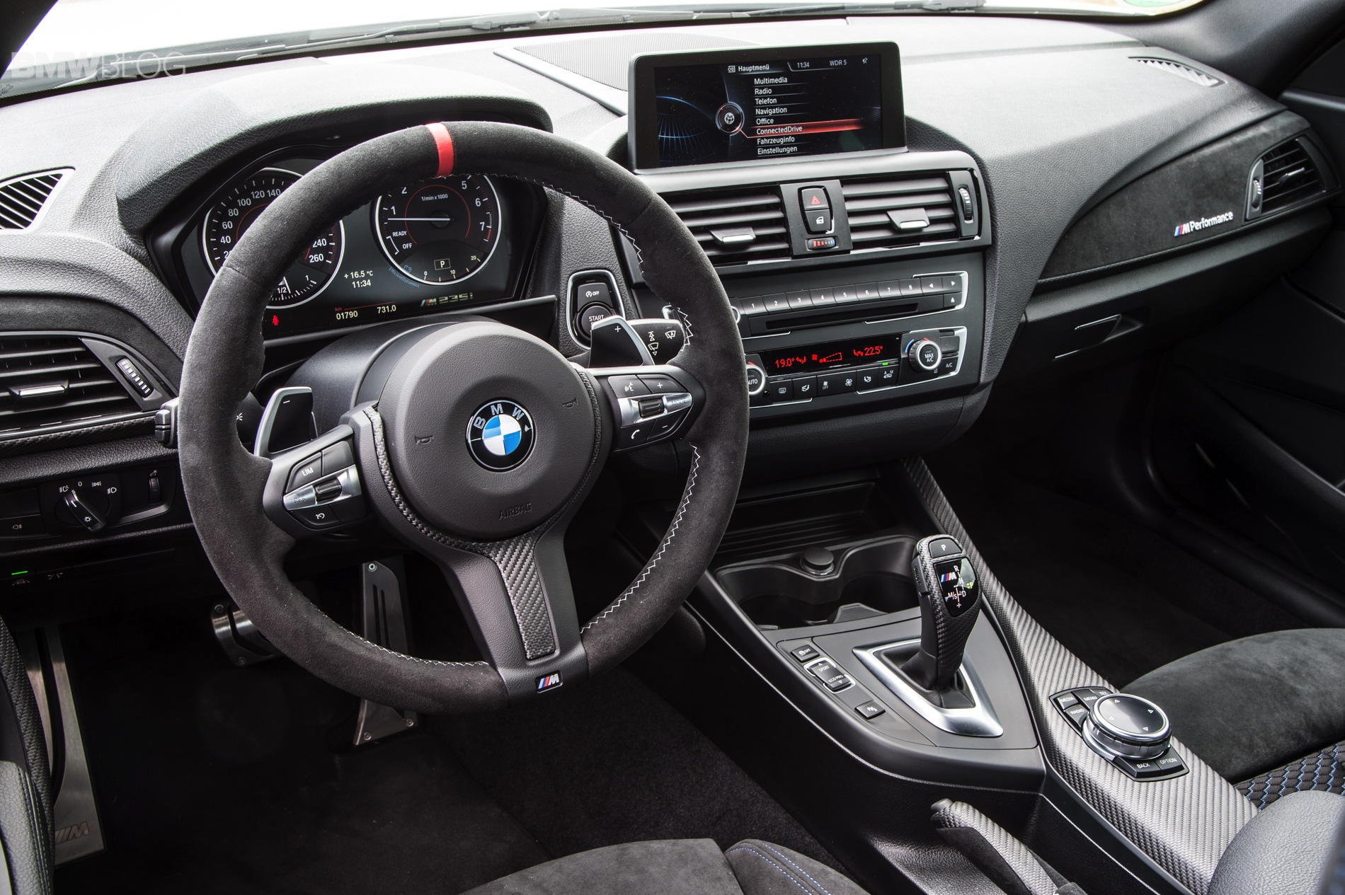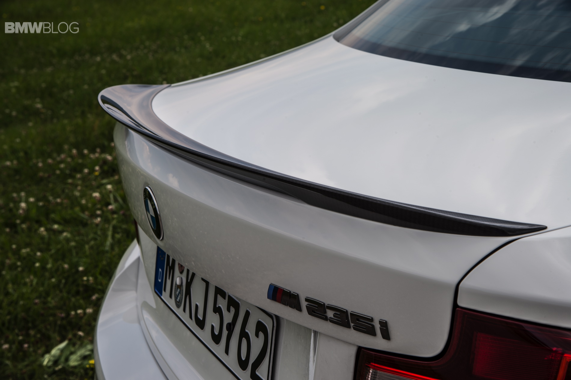 The 2014 BMW M235i M Performance Parts comes with the full M Performance Aerodynamics kit – M Performance rear diffuser, Black kidney grills and carbon fiber front splitter, M Performance Side Skirts with branding, M Performance Exhaust System, Carbon Mirror Caps – and segment exclusive 19” wheels for the M235i.