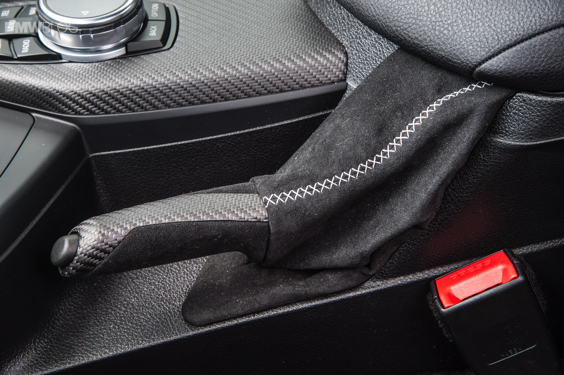 Inside, the M235i with M Performance Parts screams of sportiness. The cockpit look and feel is inspired from car racing, starting with the M Performance Sports Steering wheel in Alcantara/carbon finish which features the Race Display at the 12 o’clock position. The gear selector and handbrake handle are dressed up in carbon fiber, along with the center tunnel and door handles.