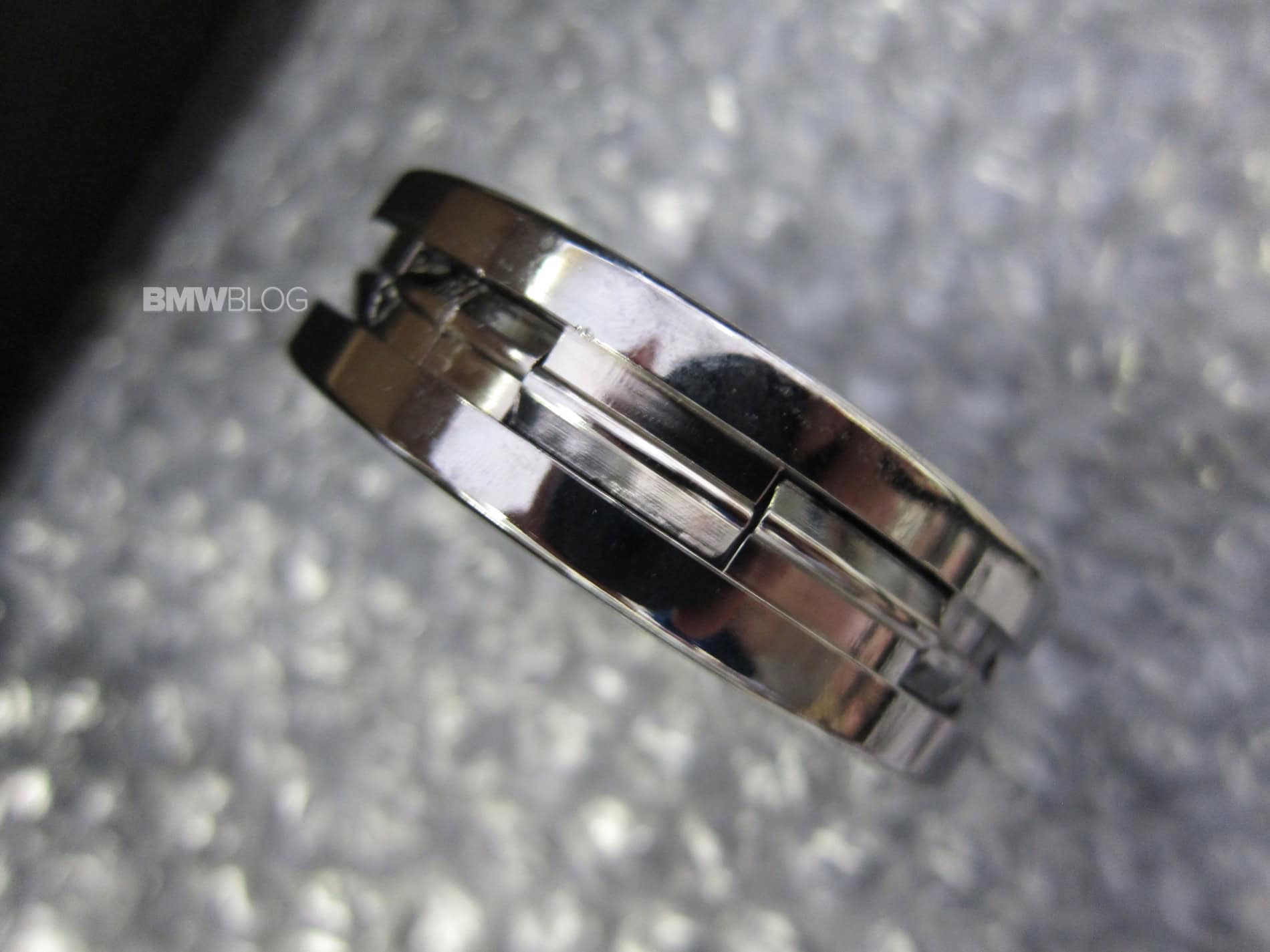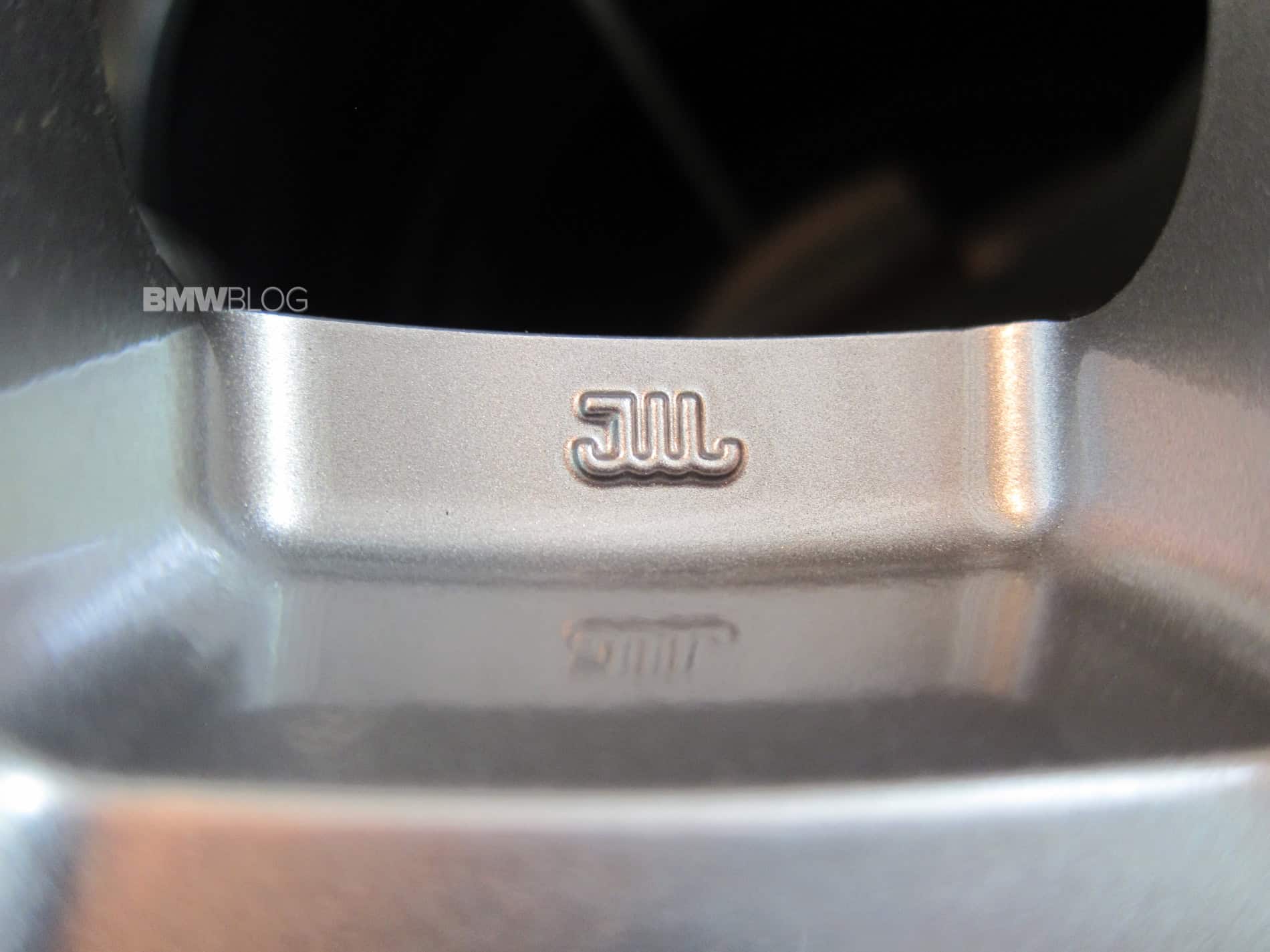 FlowForm wheels are 7-double spoke wheel with starting weight around 22lbs. The inside face of each double spoke is dished out. This gives an interesting visual detail as well as helps save weight. The edges of the double spokes connect with the outside of the rim in with a very sharply delineated edges. The Gloss Silver has a very deep luster next to the Space Gray Metallic on our E92 M3.