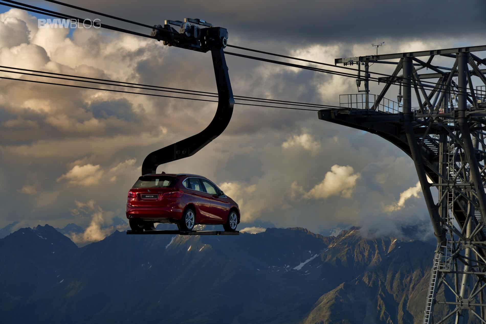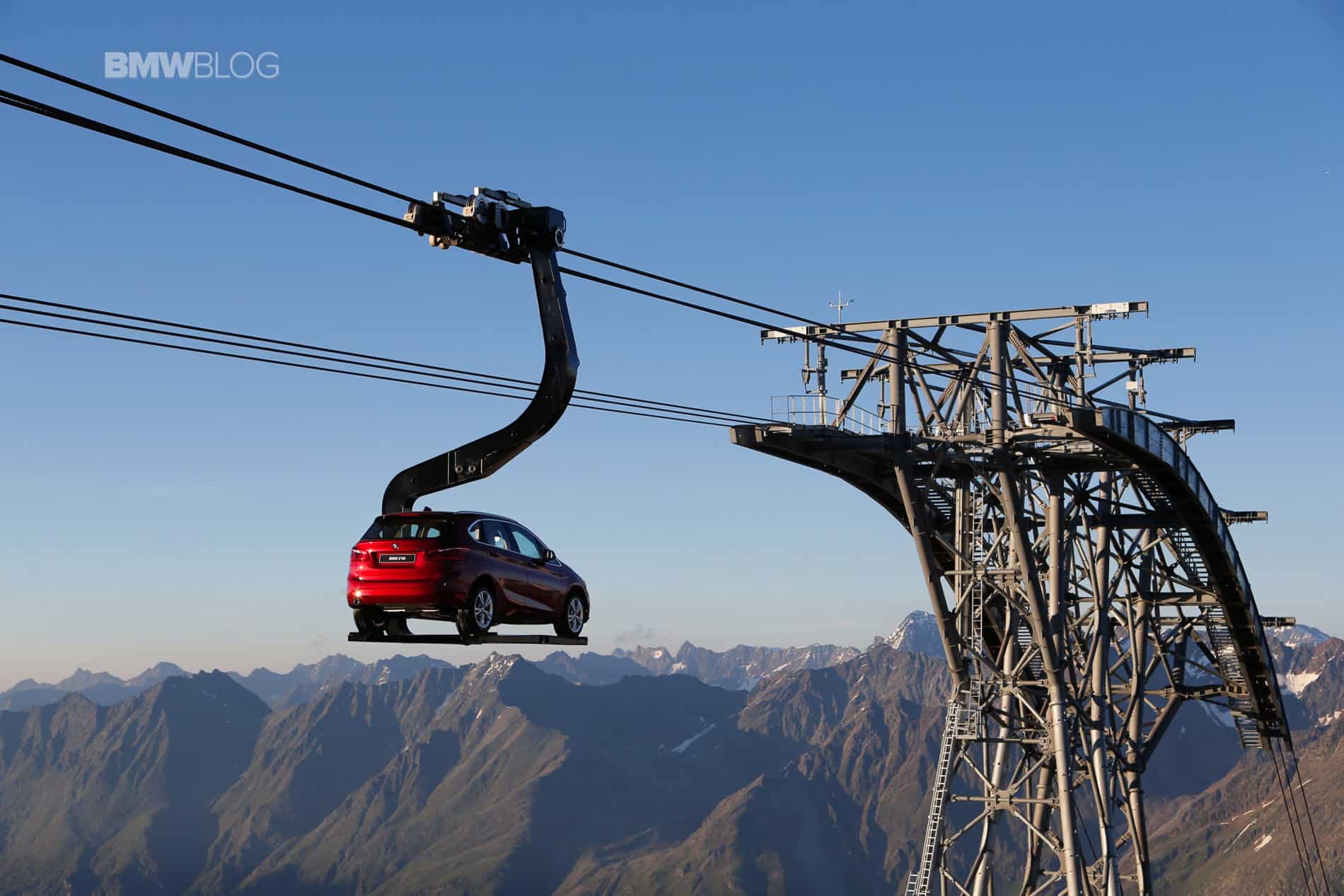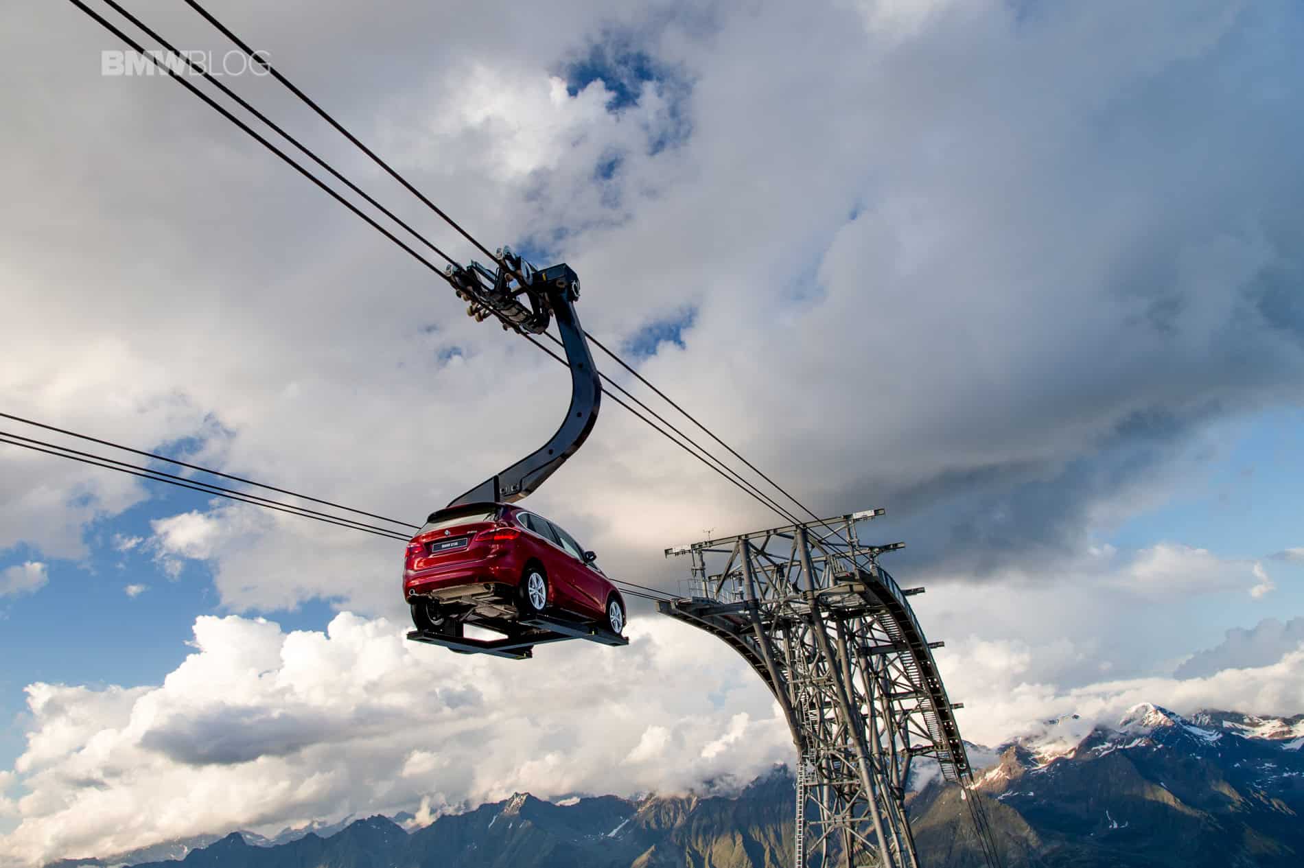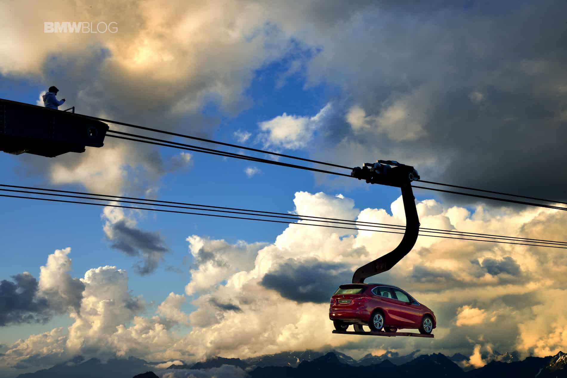To make things even more interesting for journalists, BMW decided to hold the press conference at 2100 meters above the ground. Transport to the event and then to the Ice-Q restaurant at 3048 meters was arranged with mountains gondola. But to everyone’s surprise, journalists weren’t the only ones being taken to the top of the mountain. A 2 Series Active Tourer was suspended on a platform and was set in motion up and down the mountain, a sight that you rarely see.