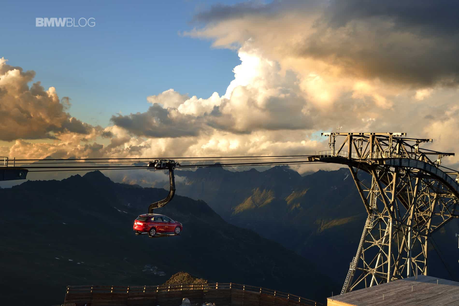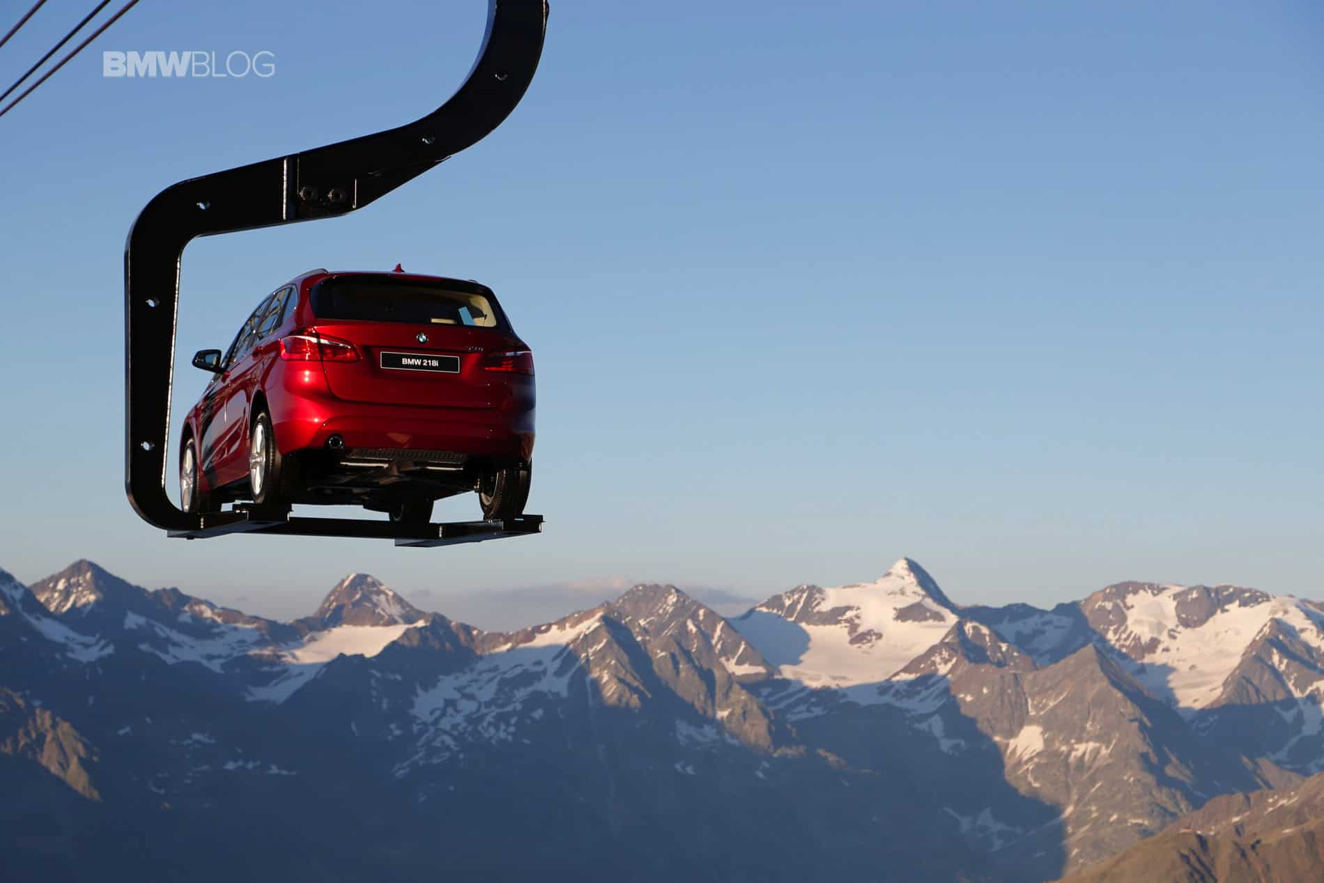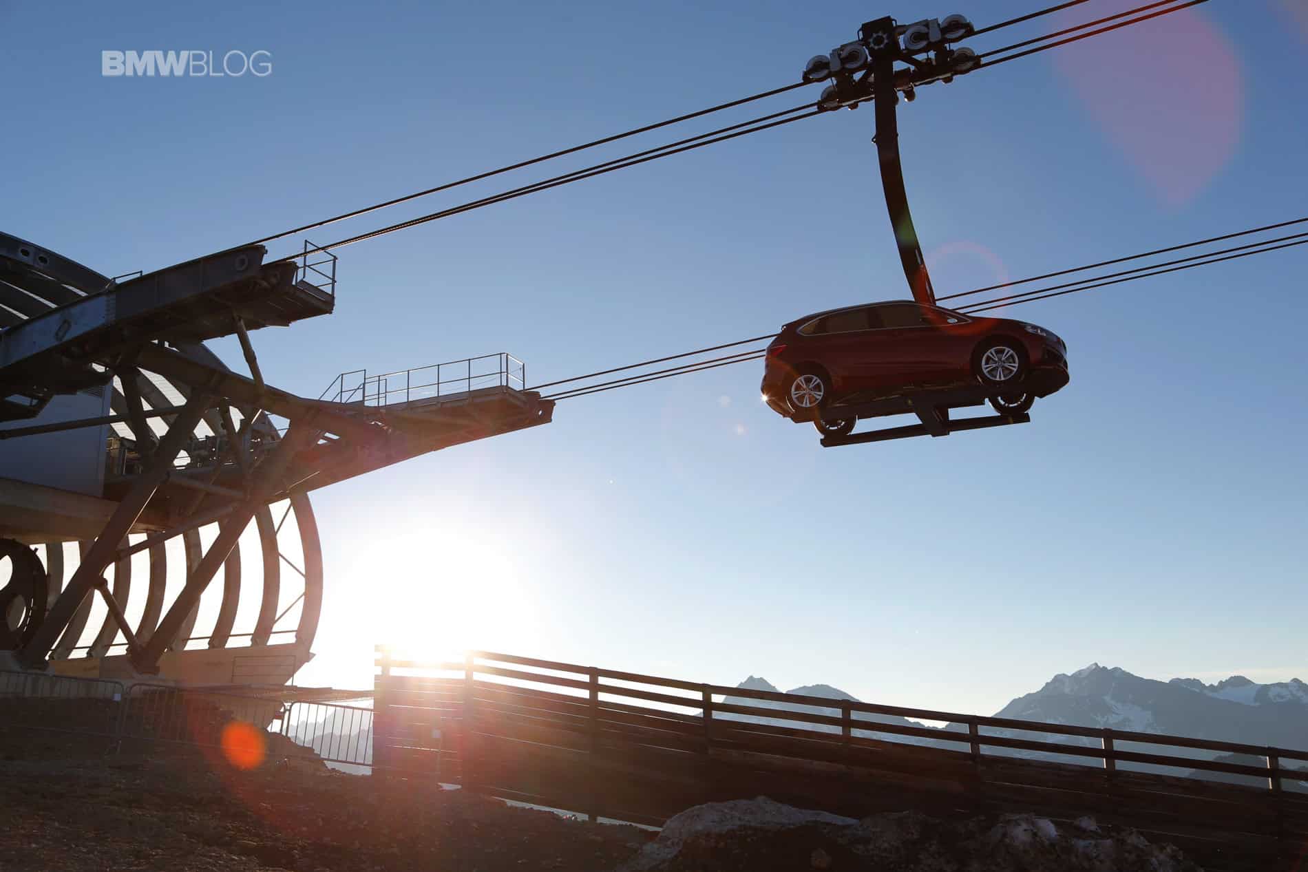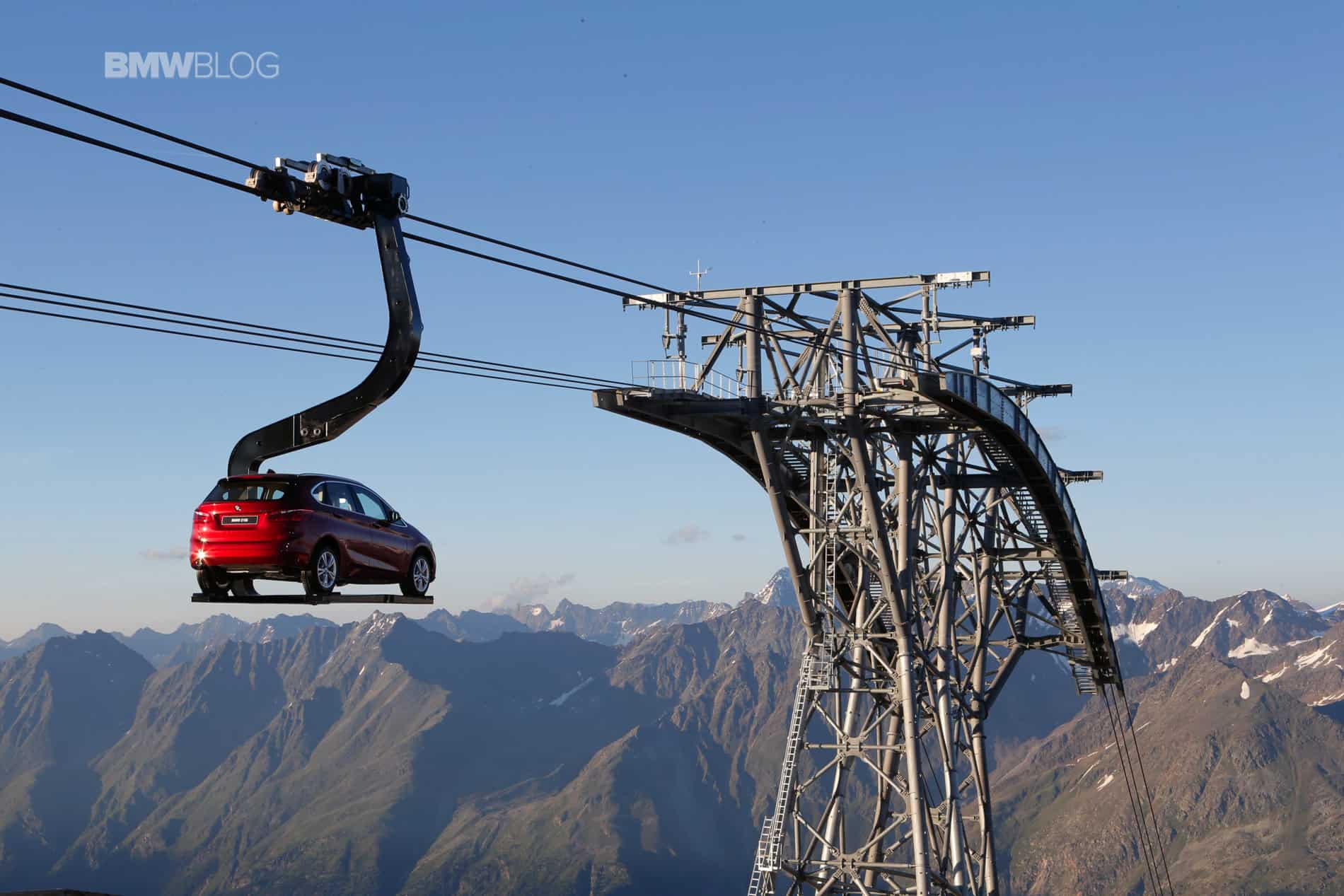 To make things even more interesting for journalists, BMW decided to hold the press conference at 2100 meters above the ground. Transport to the event and then to the Ice-Q restaurant at 3048 meters was arranged with mountains gondola. But to everyone’s surprise, journalists weren’t the only ones being taken to the top of the mountain. A 2 Series Active Tourer was suspended on a platform and was set in motion up and down the mountain, a sight that you rarely see.