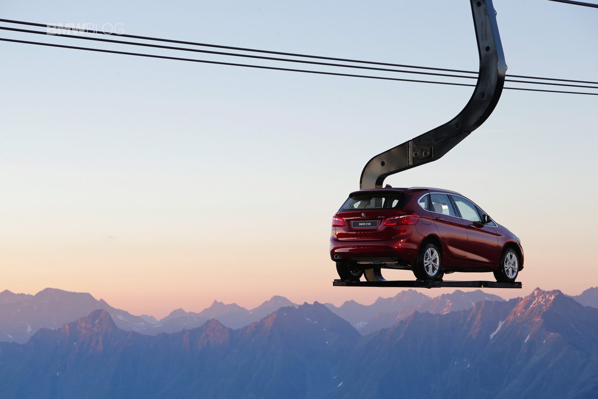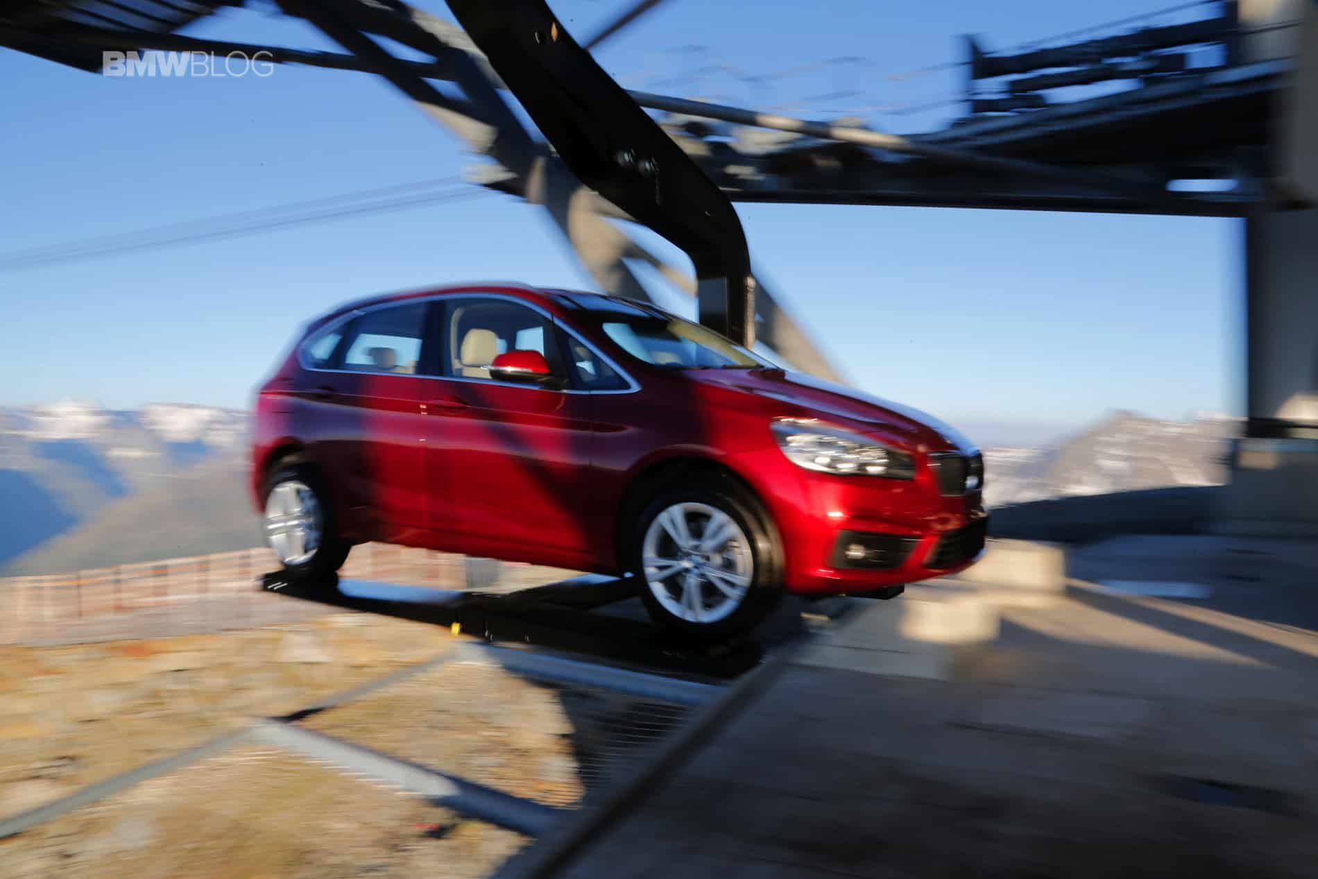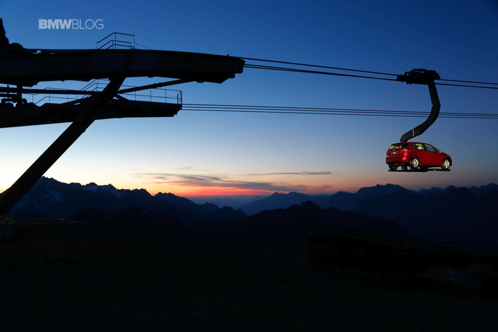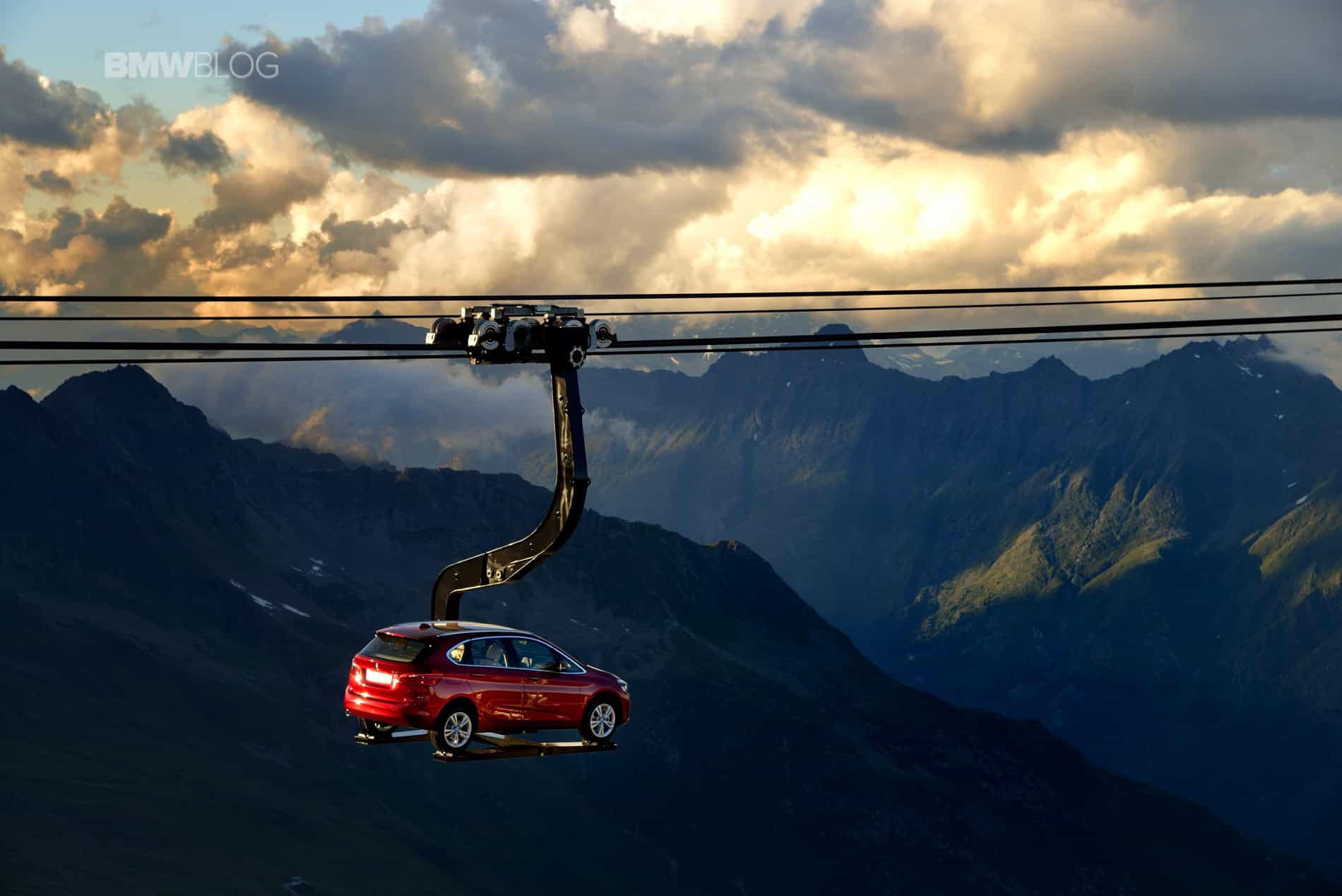To make things even more interesting for journalists, BMW decided to hold the press conference at 2100 meters above the ground. Transport to the event and then to the Ice-Q restaurant at 3048 meters was arranged with mountains gondola. But to everyone’s surprise, journalists weren’t the only ones being taken to the top of the mountain. A 2 Series Active Tourer was suspended on a platform and was set in motion up and down the mountain, a sight that you rarely see.