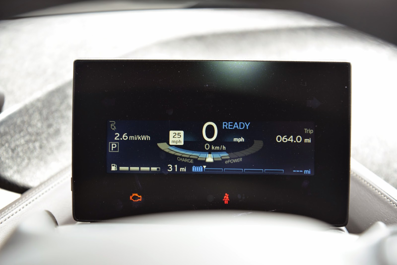 I was surprised to find that the Rex engine didn’t turn on until about 52 miles into the drive (about 10 miles from the summit) with a total trip average mi/kWh of 2.8 when the REx kicked on.  However, about 1 minute after the REx turned on I got a Brake error message that ended up making the brake pedal feel stiff and pretty much unusable.  Fortunately, I was still heading uphill and the regen seemed to be working normally.