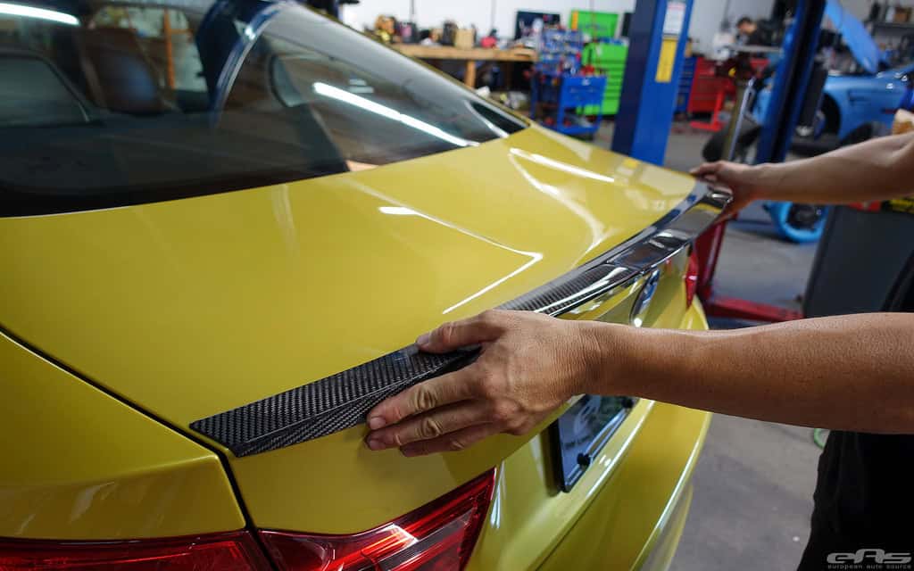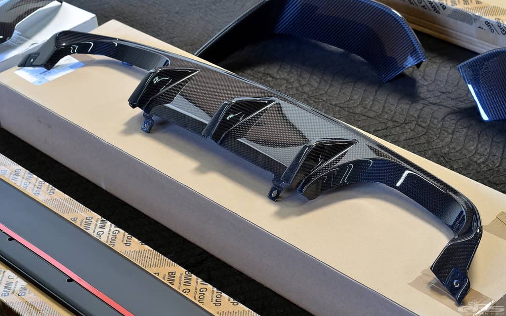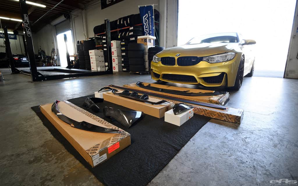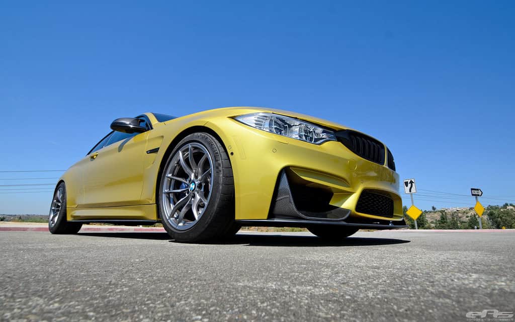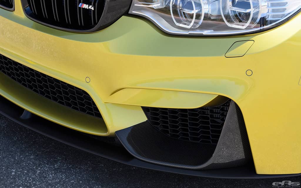“Having seen, handled and installed a lot of aftermarket parts, this has to be some of the best quality and designed pieces we’ve seen. All parts fit perfectly with the M4’s contours with no visible gaps, even for the most scrutinized types. Extra bonus on the M4 since there isn’t a spoiler requiring removal like M3 (and previous models). As with the previous E9X M3 Performance line, all parts are 2×2 carbon weave, with exception of the lower lip and side blade attachments – quite possibly since they are in the impact zone close to the road.” – EAS