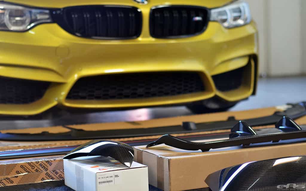 The build kicked off with the installation of BMW M-Performance aero parts, a selection of high-quality carbon fiber aftermarket addons. Later stages of the build will also be throughouly documented, but at this time we will be showing you the aero parts installation and final result.
