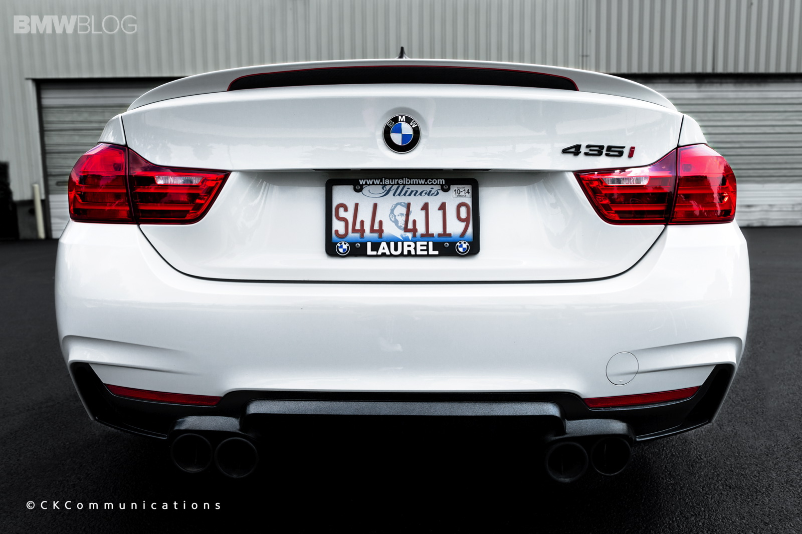 In the power department, the 435i M Power Kit adds 33 horsepower and 37 kb-ft of torque. To increase the stock sound, the standard exhaust was replaced by one produced by Meistershaft which also adds quad-exhaust tips.
